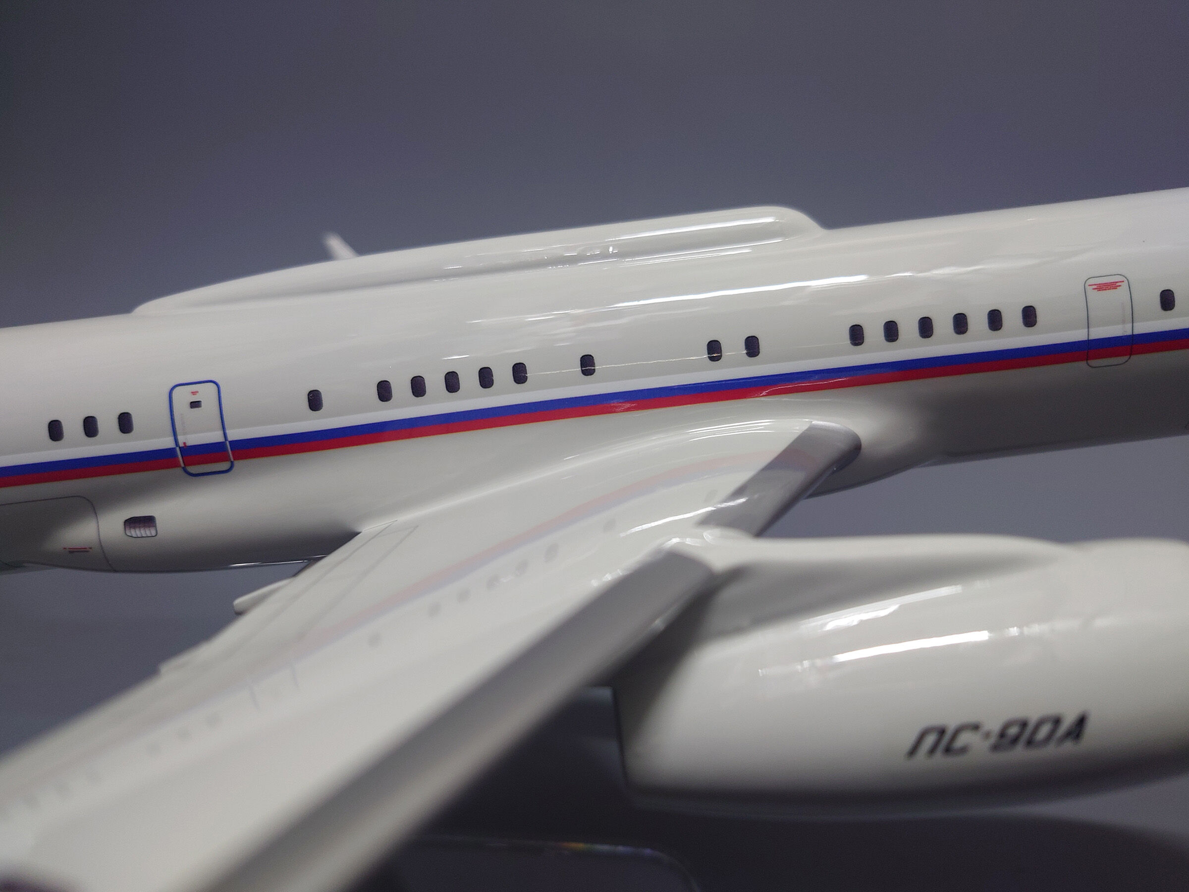 Готовая модель самолета упакована в картонную коробку с поролоновой нишей, что обеспечивает надежную защиту при транспортировке.