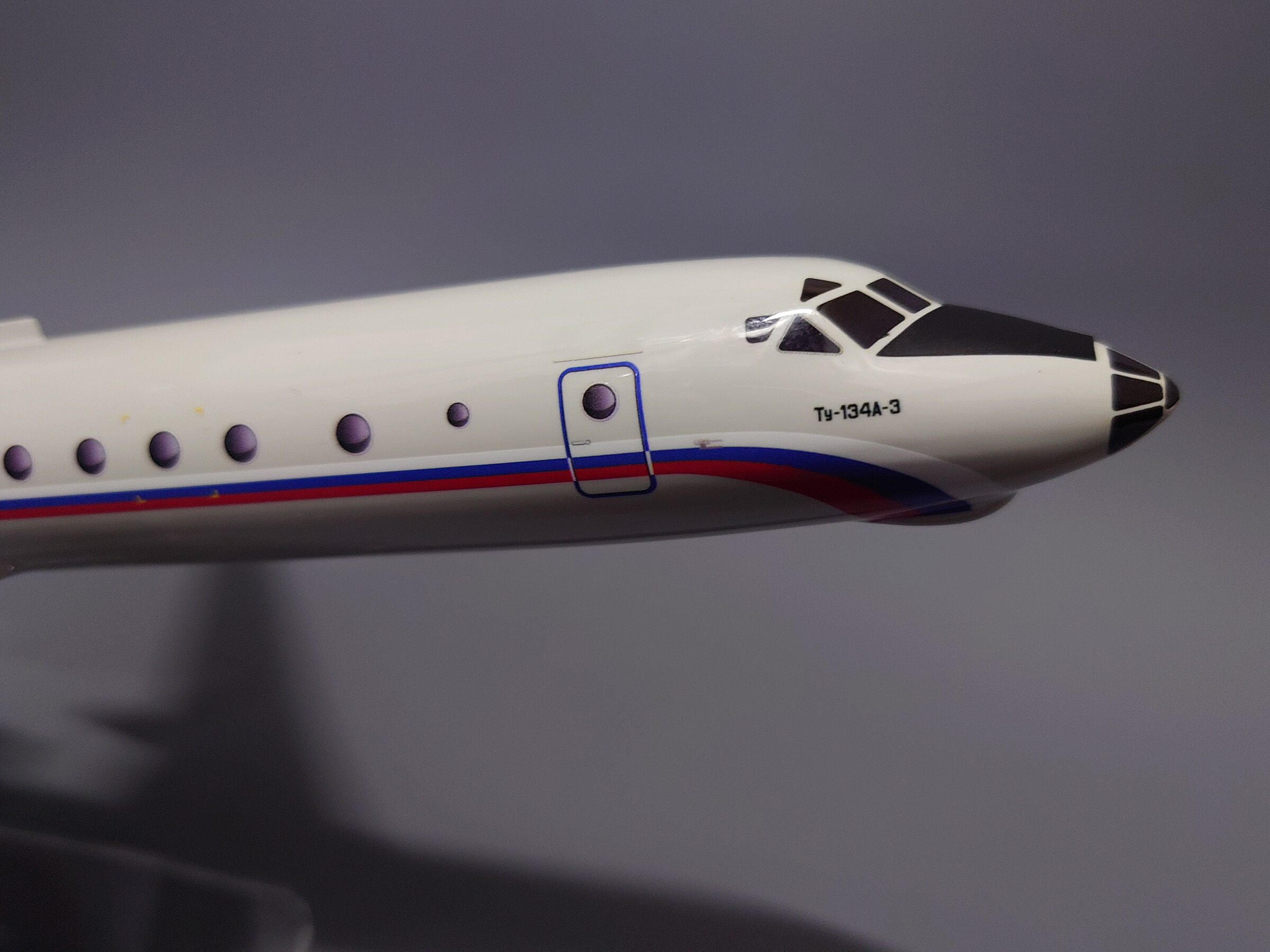 Представляем вам уникальную подарочную настольную модель самолета Ту-134 с антенной БУС в раскраске СЛО Россия выполненную в масштабе 1:100 из высококачественных композитных материалов методом литья, что сделает её настоящим украшением вашего рабочего стола или коллекции.