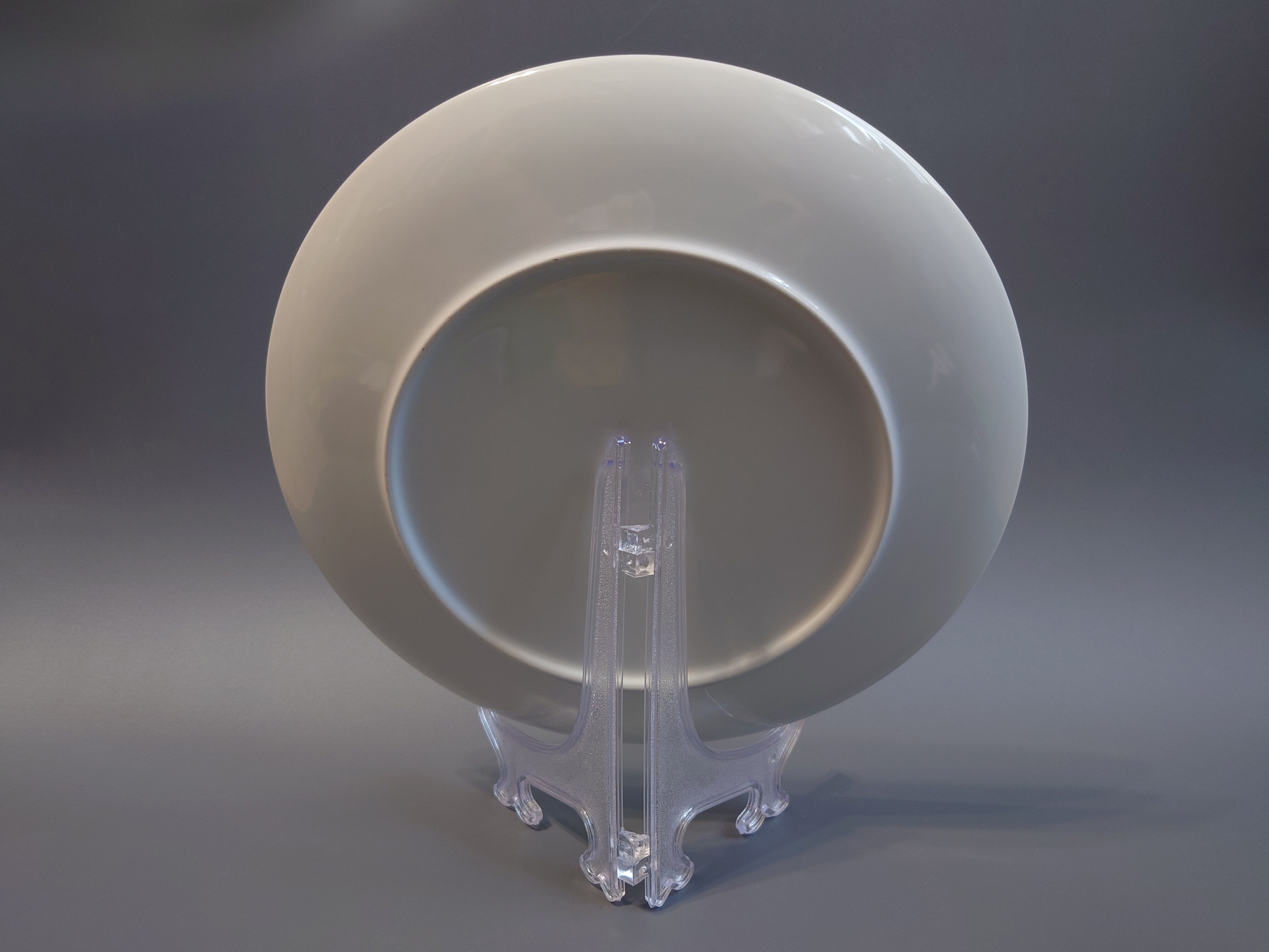 Тарелка поставляется с декоративной подставкой, что позволяет использовать ее не только как элемент декора, но и как функциональный предмет. Подставка выполнена в том же стиле, что и тарелка, что придает ей законченный и гармоничный вид.