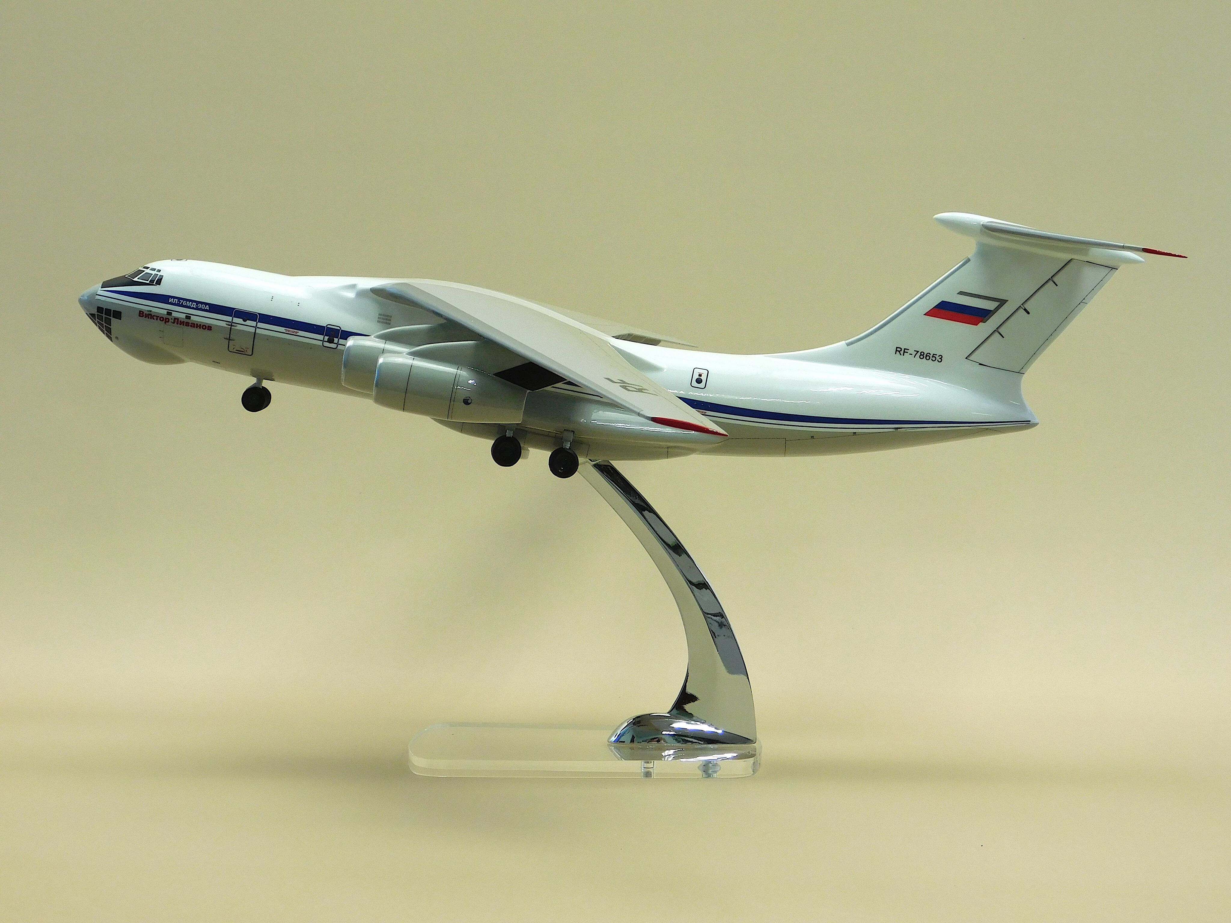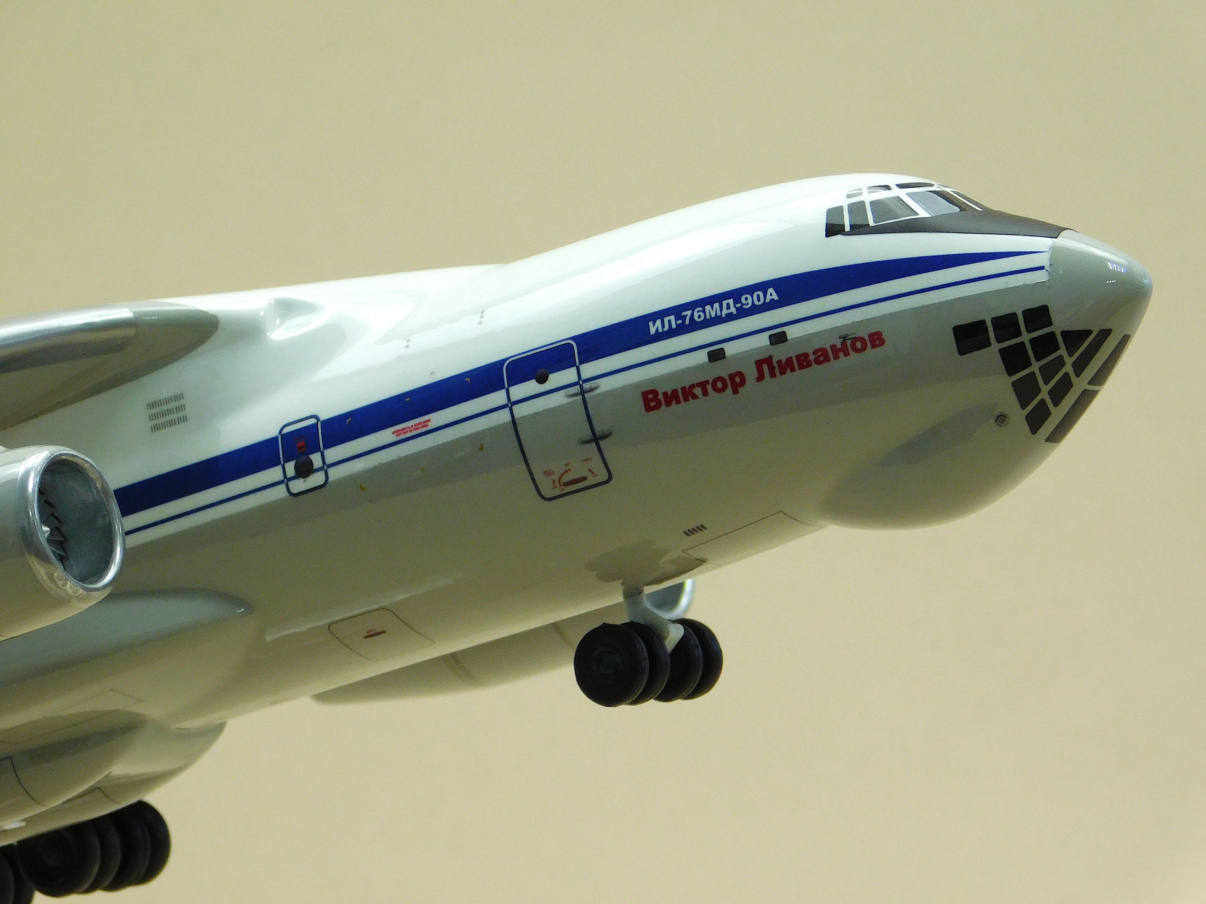 Представляем вам уникальную подарочную настольную модель самолета Ил-76МД-90А Виктор Ливанов с шасси выполненную в масштабе 1:100 из высококачественных композитных материалов методом литья, что сделает её настоящим украшением вашего рабочего стола или коллекции.