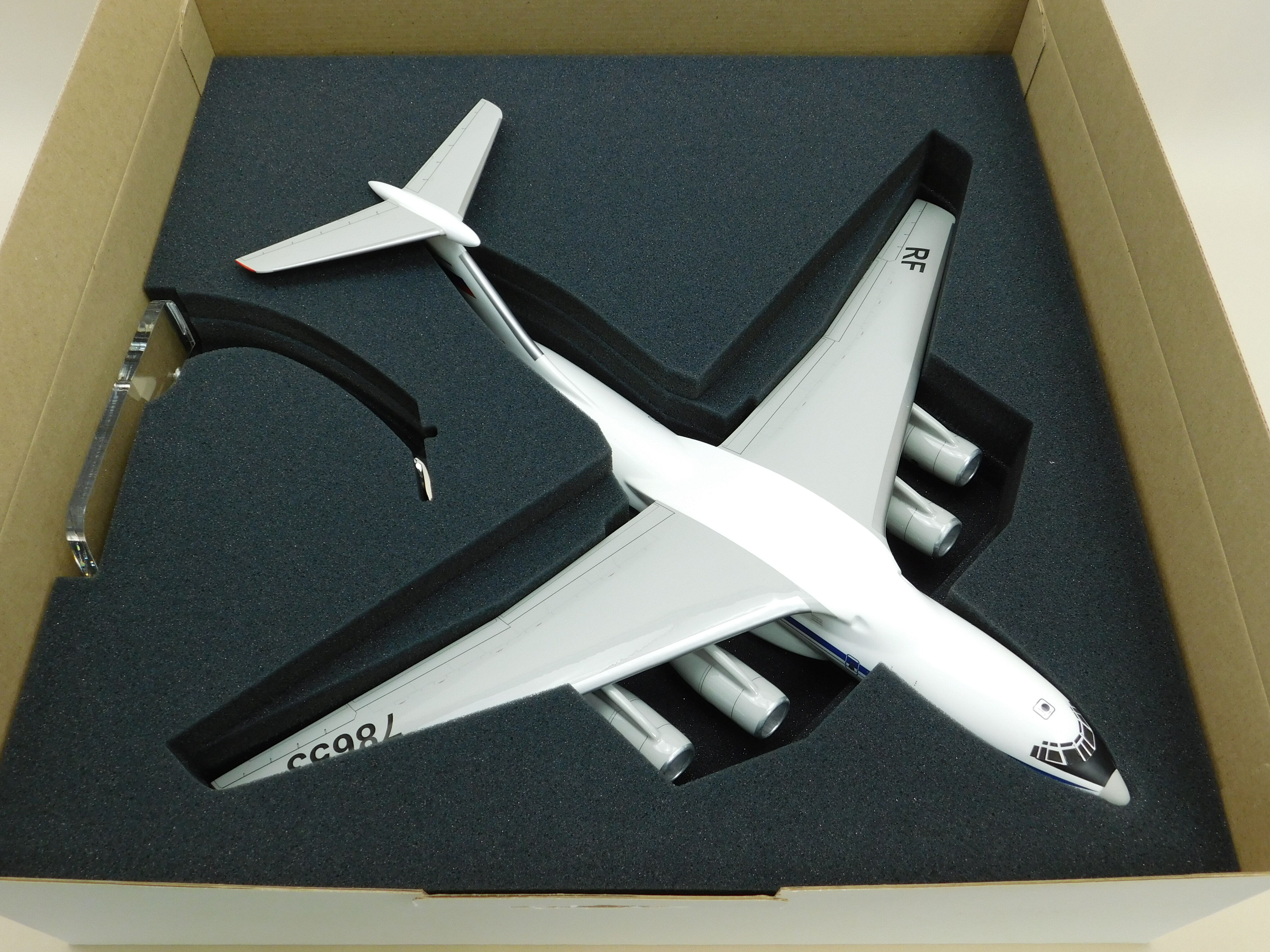 Готовая модель самолета упакована в картонную коробку с поролоновой нишей, что обеспечивает надежную защиту при транспортировке.