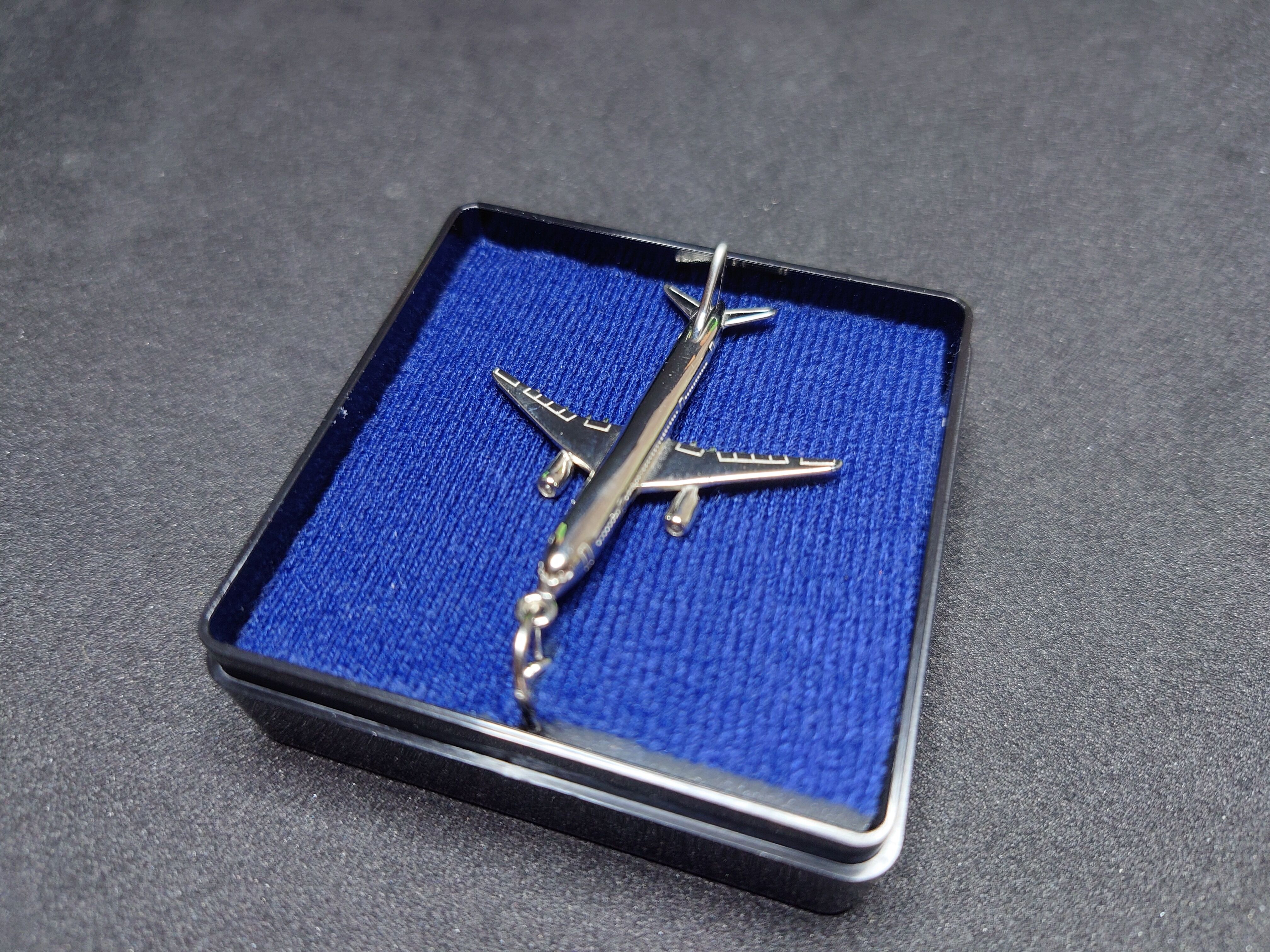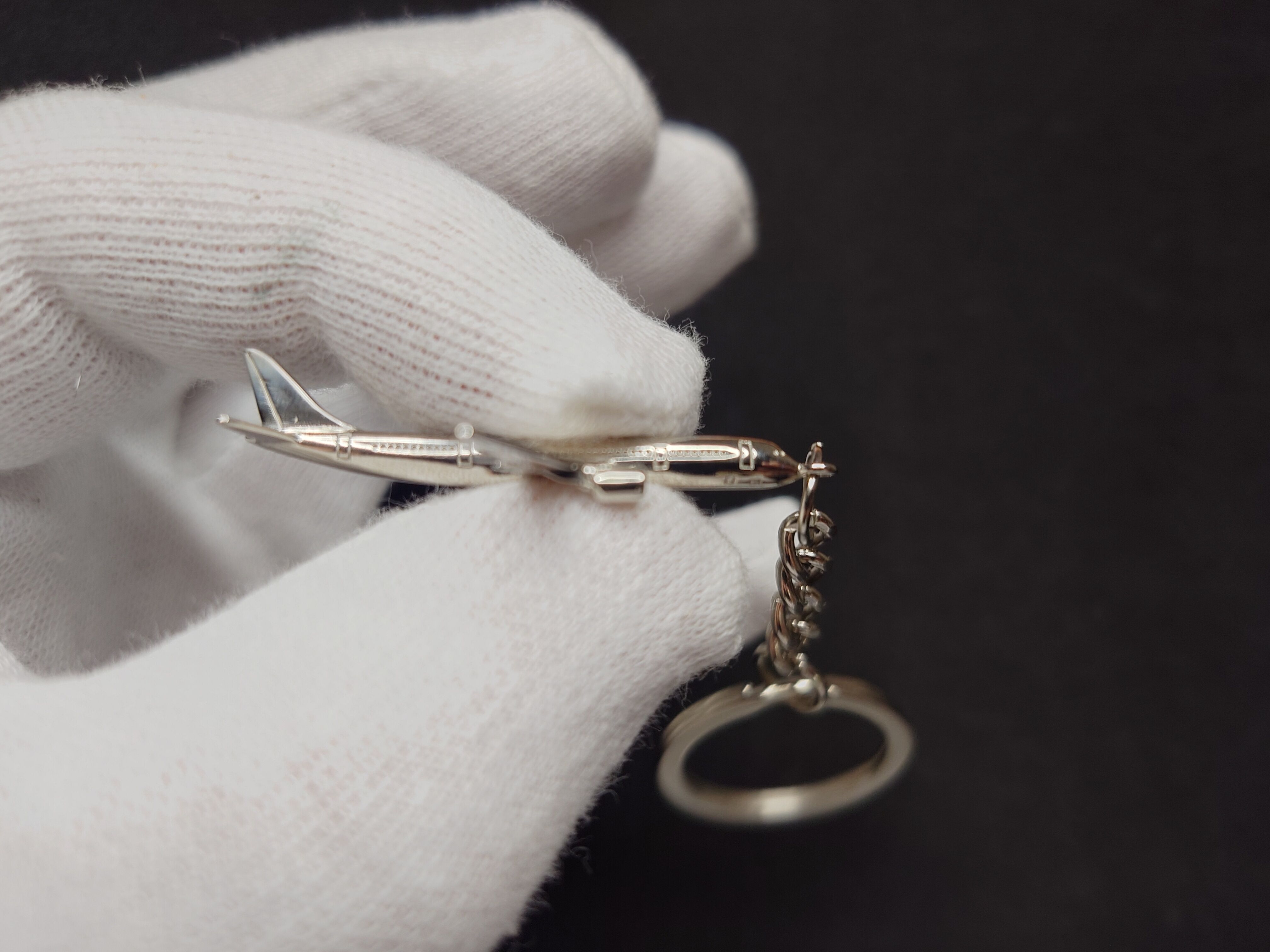 Диаметр кольца - 3.3 см, длина цепочки 2 см, а полная длина с самолетом - 10 см.
