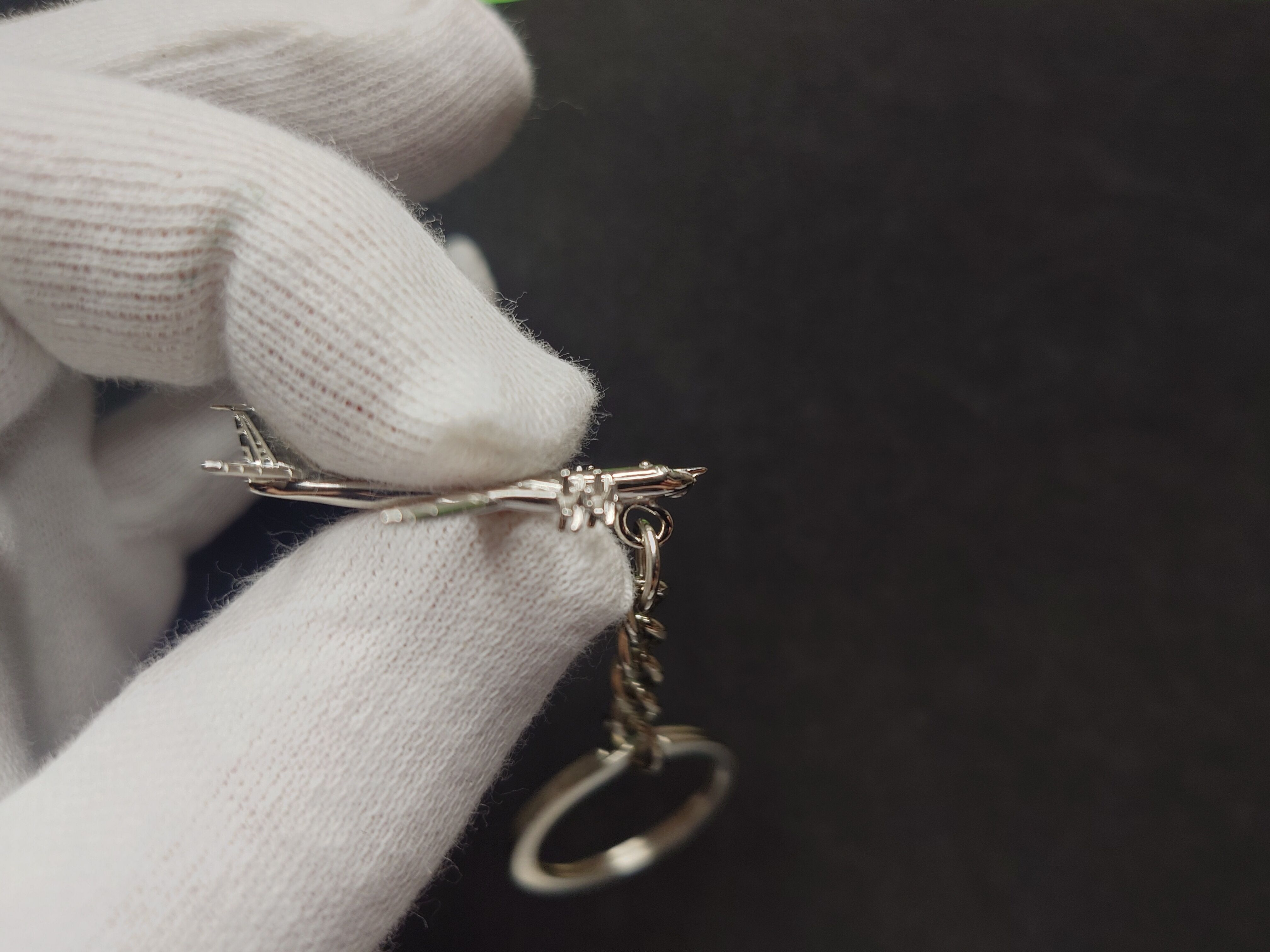 Диаметр кольца - 3.3 см, длина цепочки 2 см, а полная длина с самолетом - 9 см.