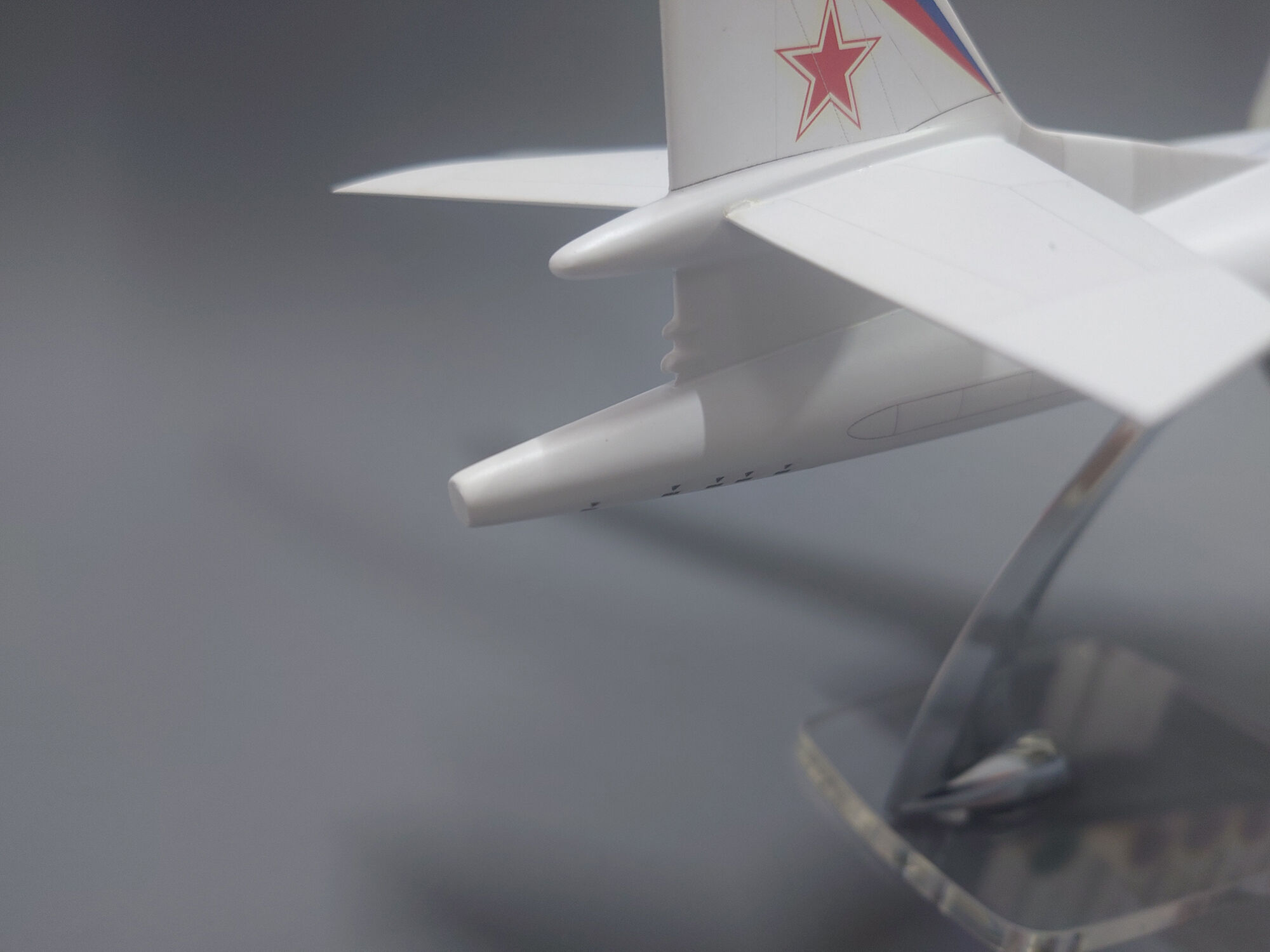Готовая модель самолета упакована в картонную коробку с поролоновой нишей, что обеспечивает надежную защиту при транспортировке.