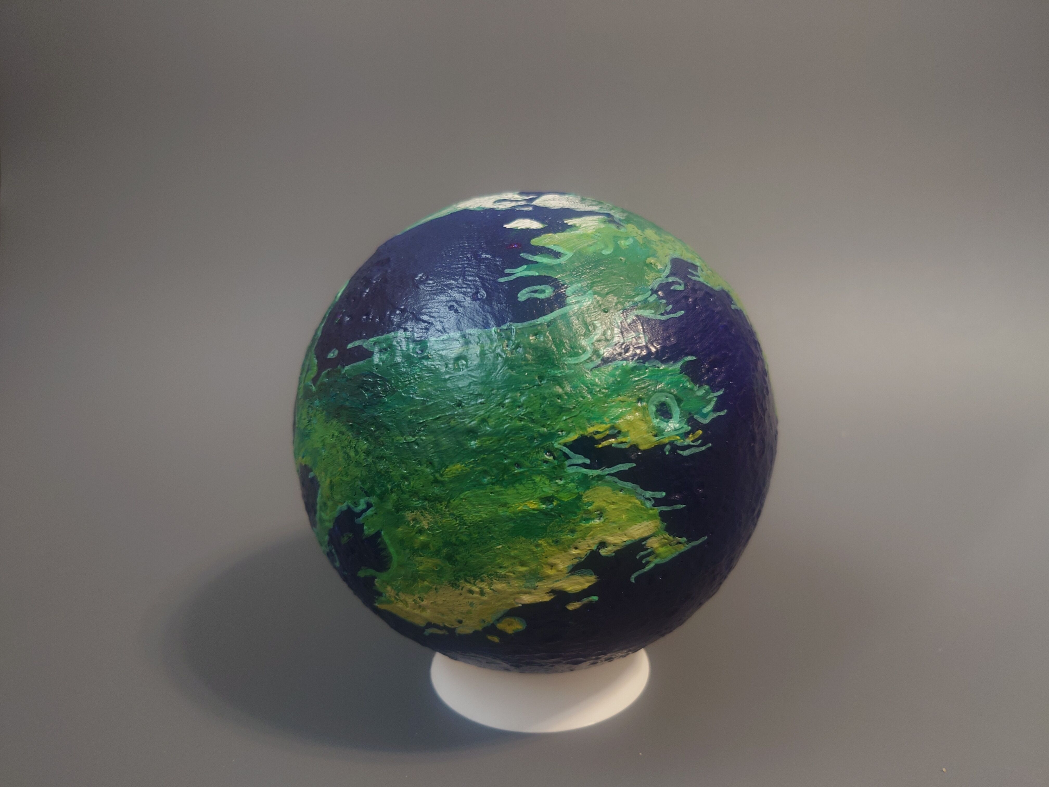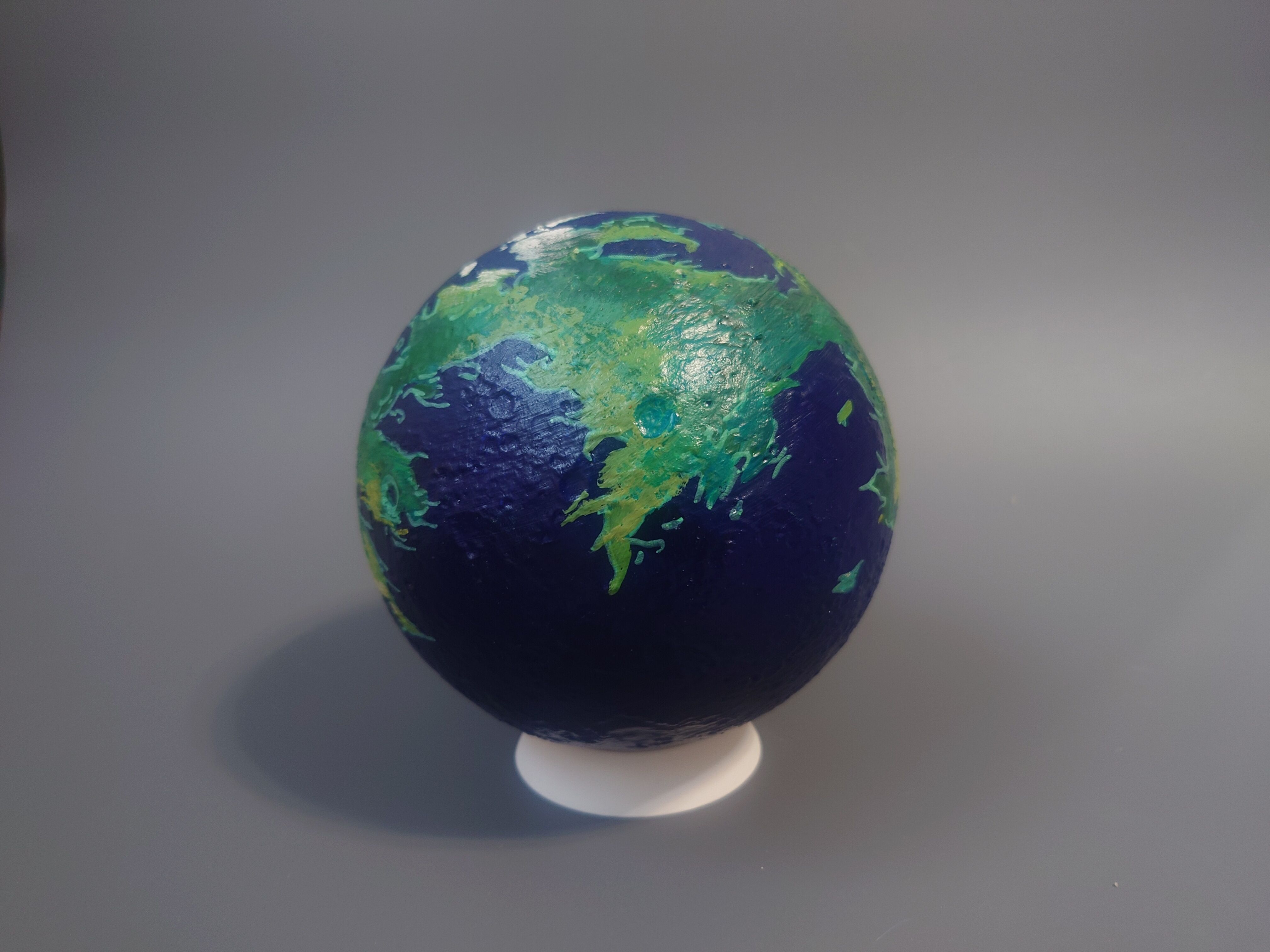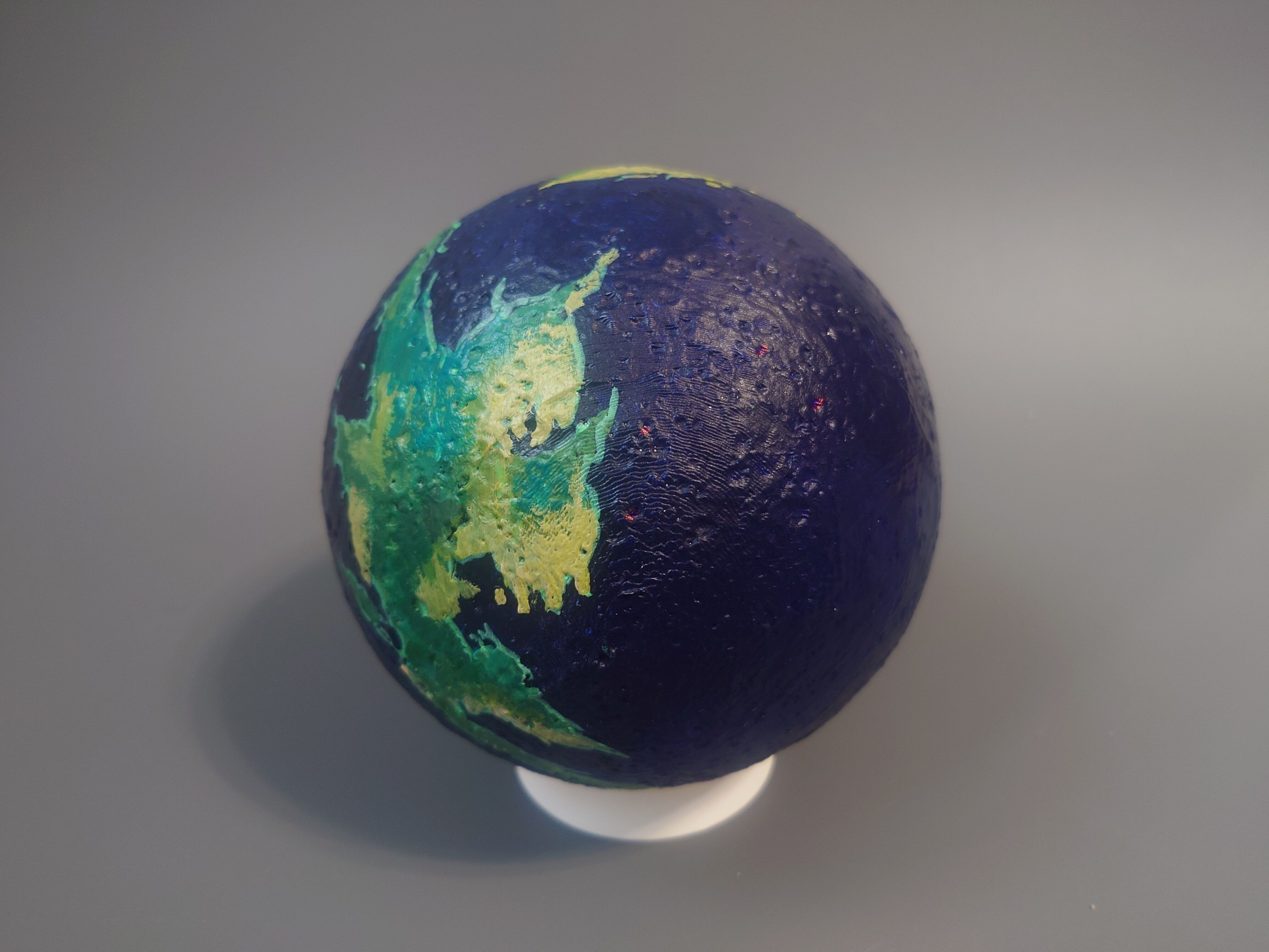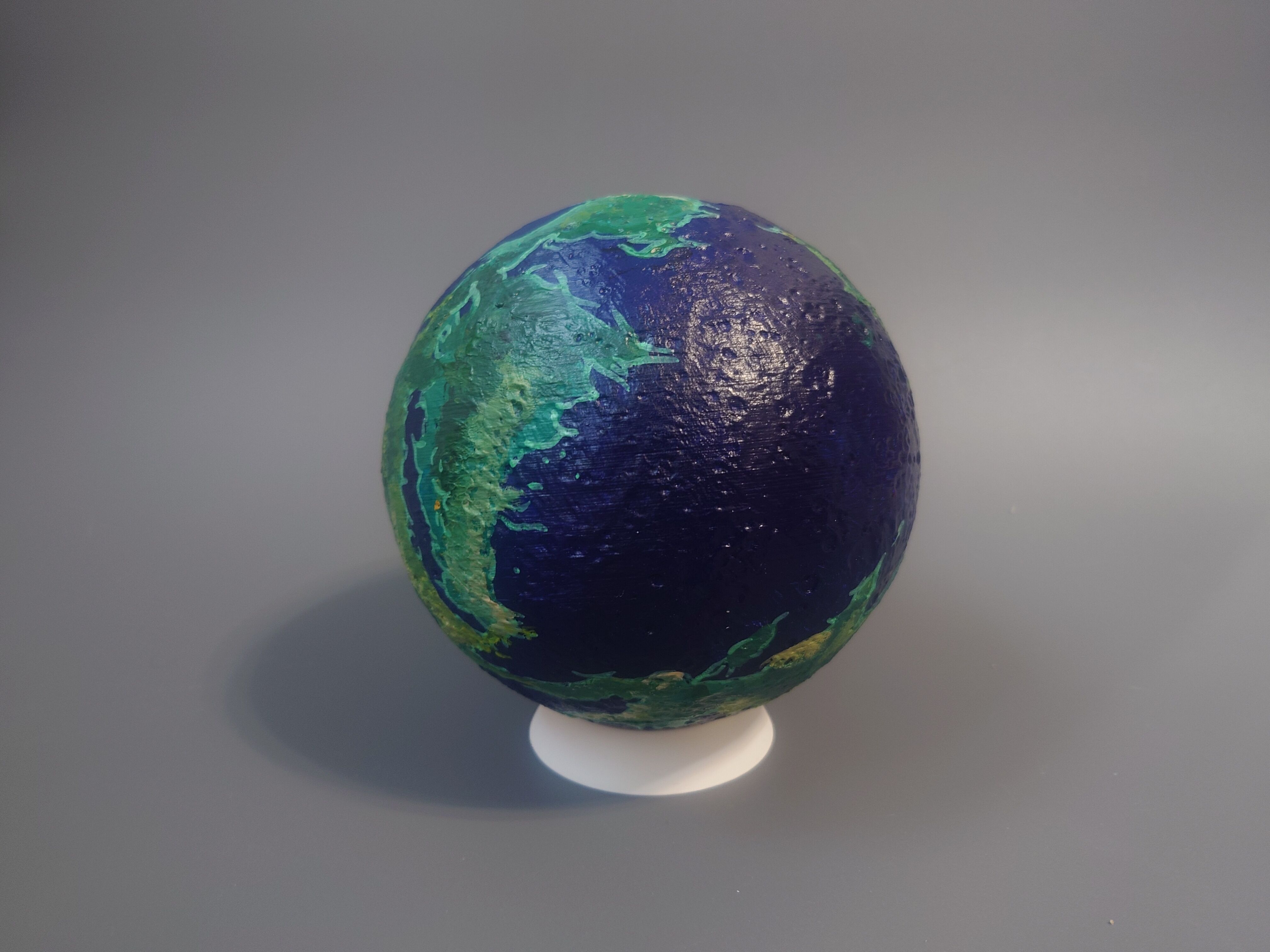 Модель экзопланеты Kepler-438b напечатана на 3D принтере с вымышленным высотным рельефом местности и расположением материков.