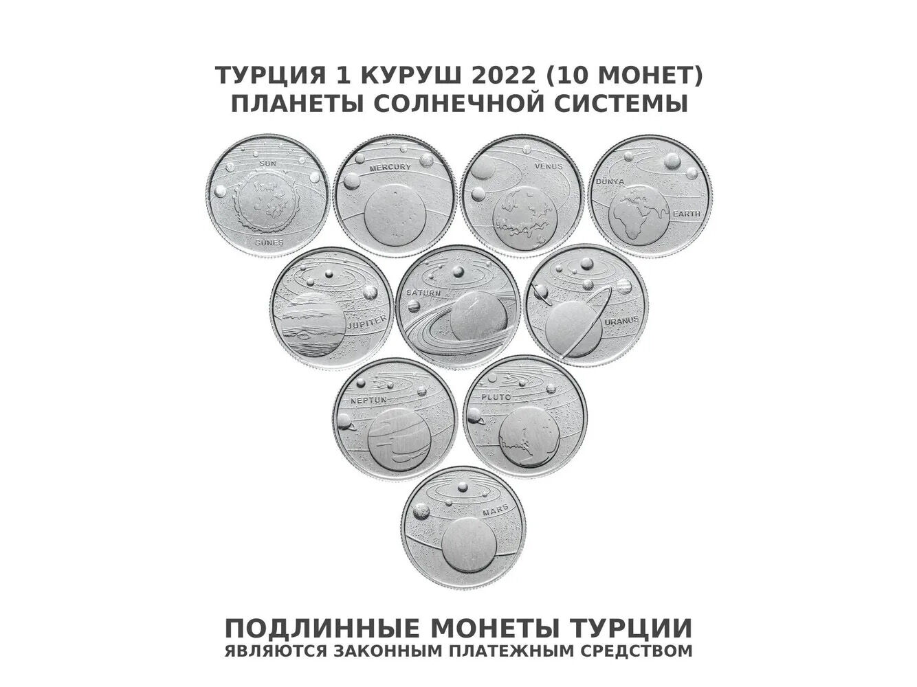 Набор из 10 монет (9 планет и Солнце). На аверсе монеты: схематичное изображение планет с наименованием на английском языке.