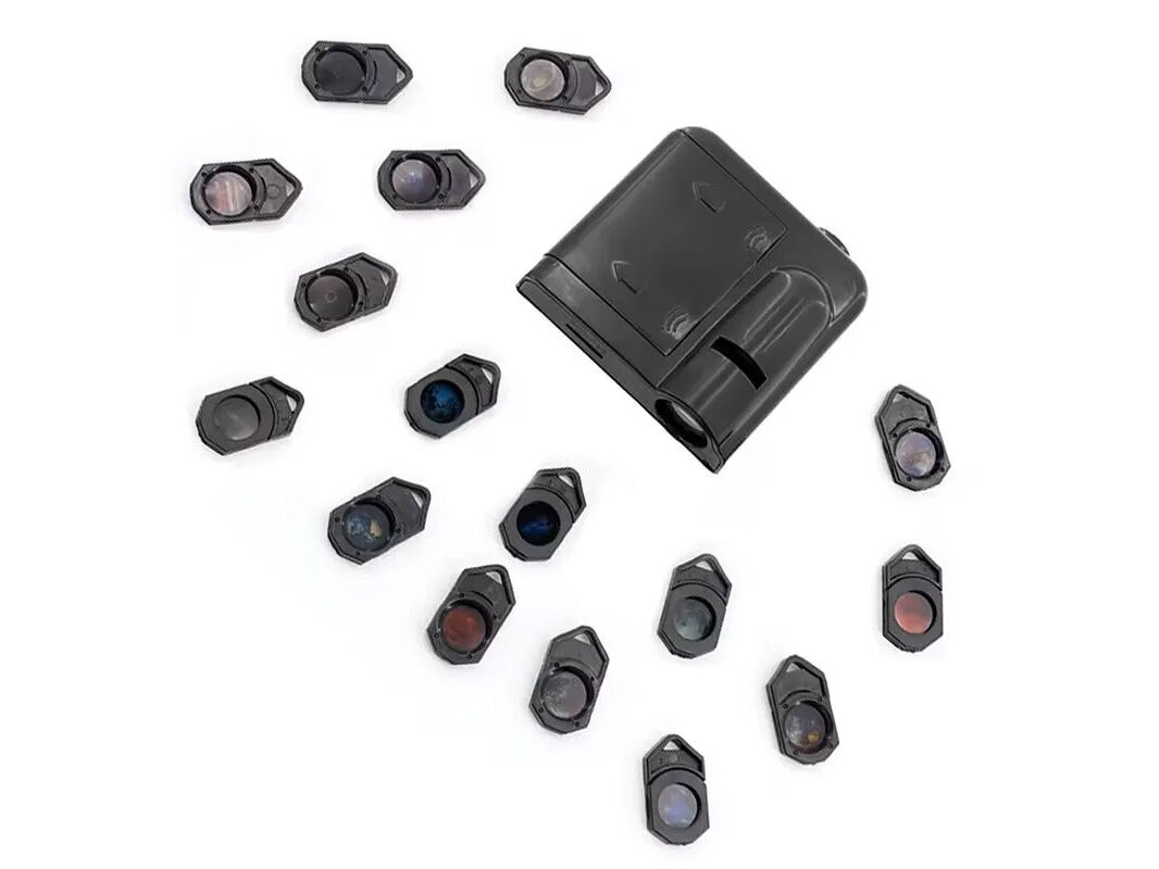 На корпусе есть кнопка включения-выключения, отсек для батареек (не идут в комплекте) и отсек для вставки слайдов (16 штук).