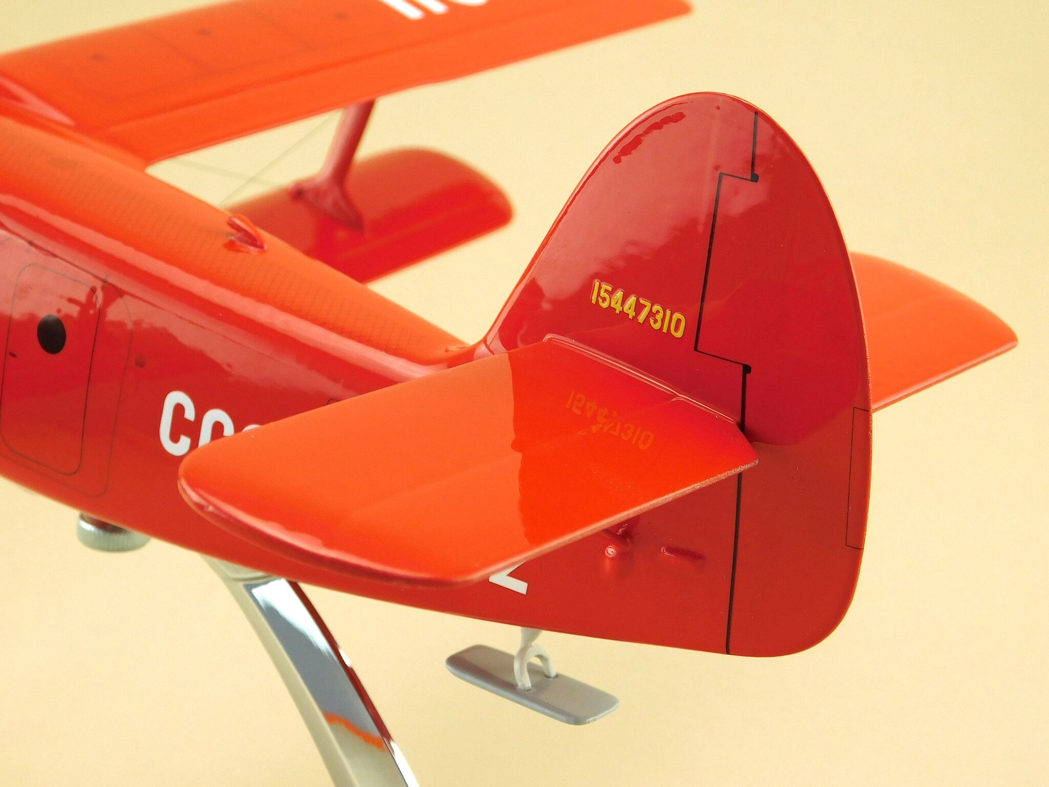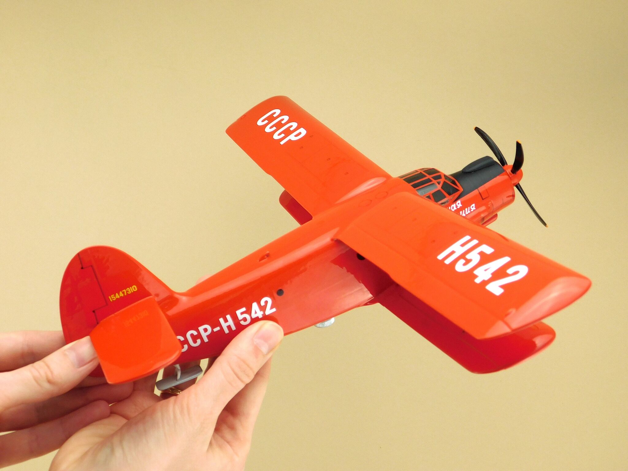 Готовая модель самолета упакована в картонную коробку с поролоновой нишей, что обеспечивает надежную защиту при транспортировке.