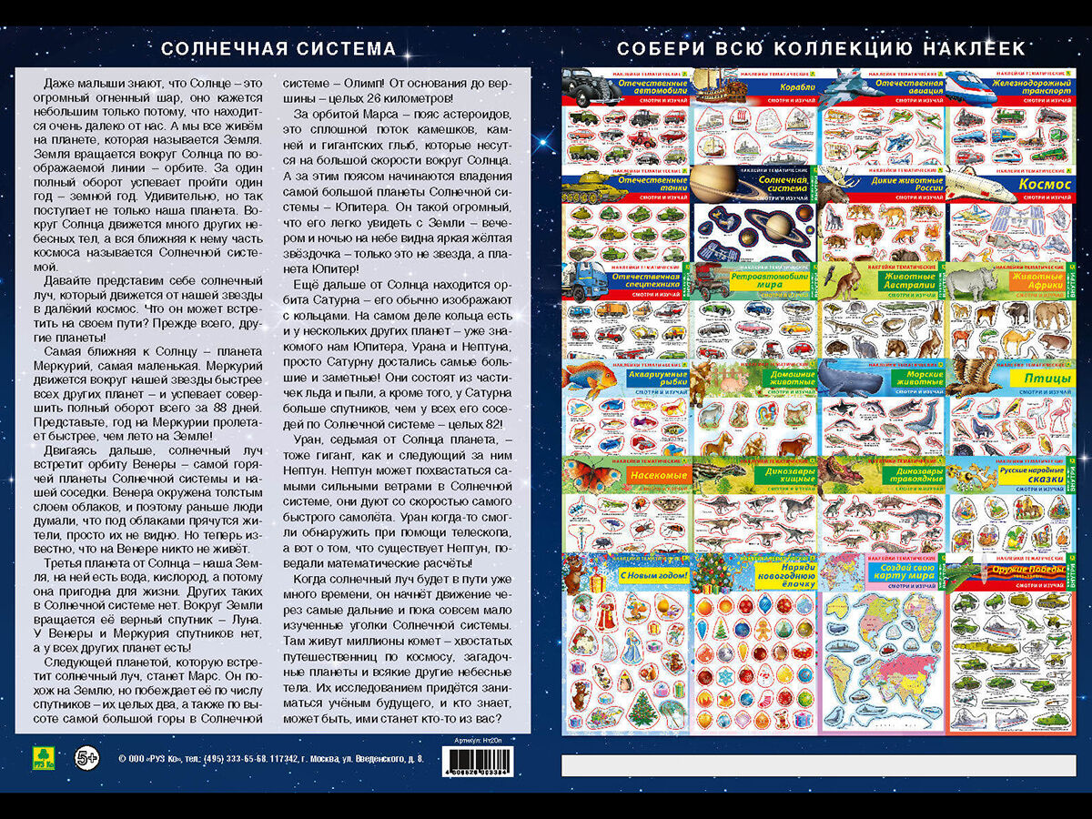 Отличные наклейки. Их много, отклеиваются хорошо, ребенок легко справляется. Есть куда их лепить. Понравилось, что планеты разных размеров, и есть справочная информация.