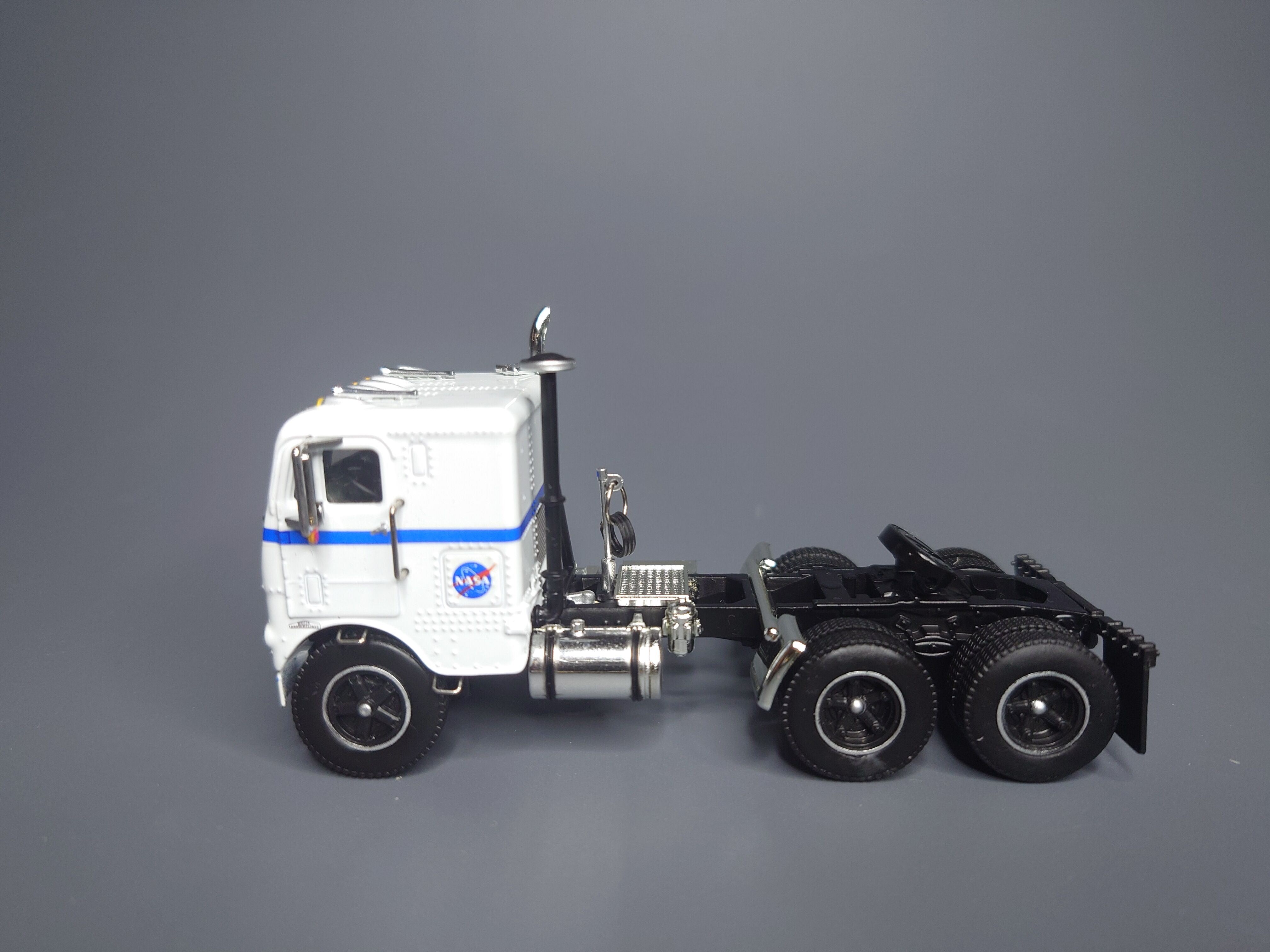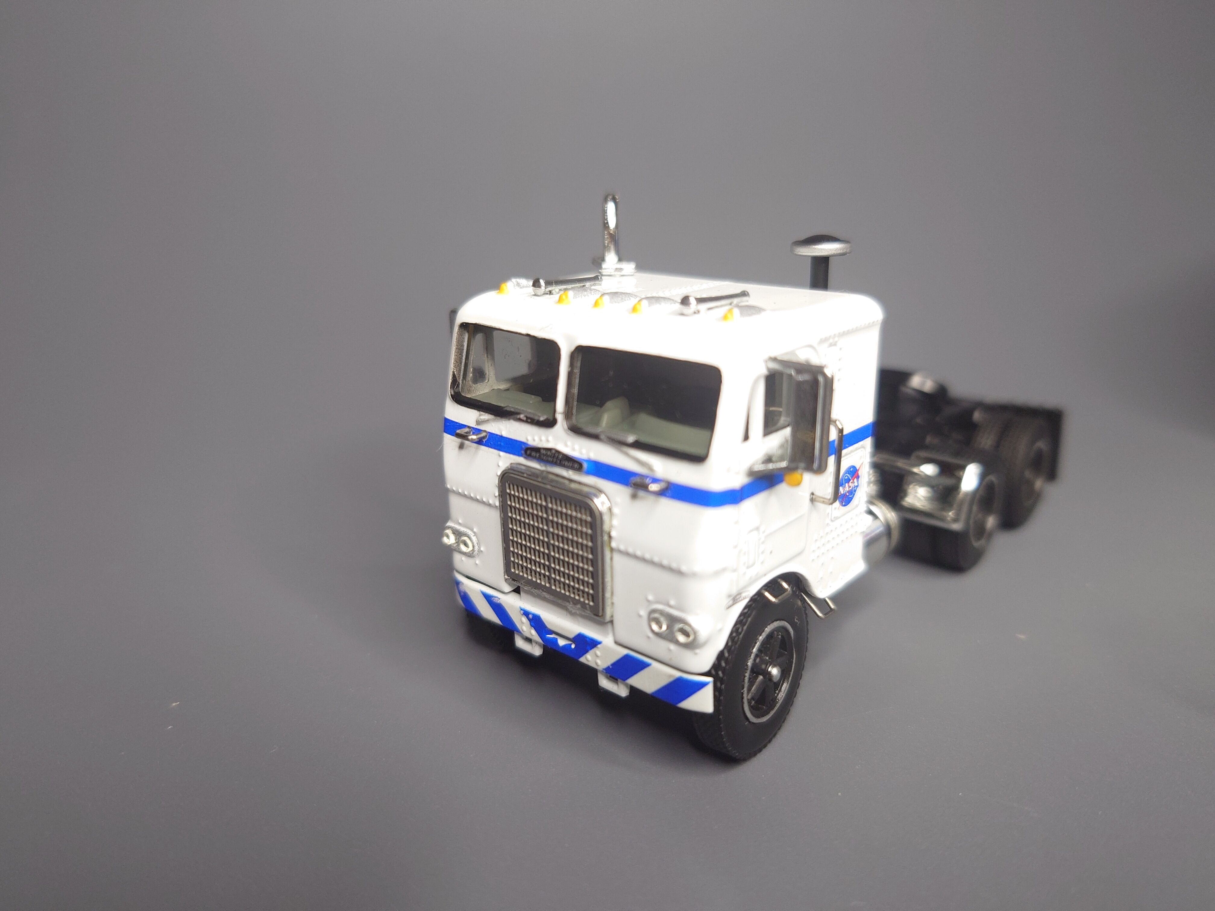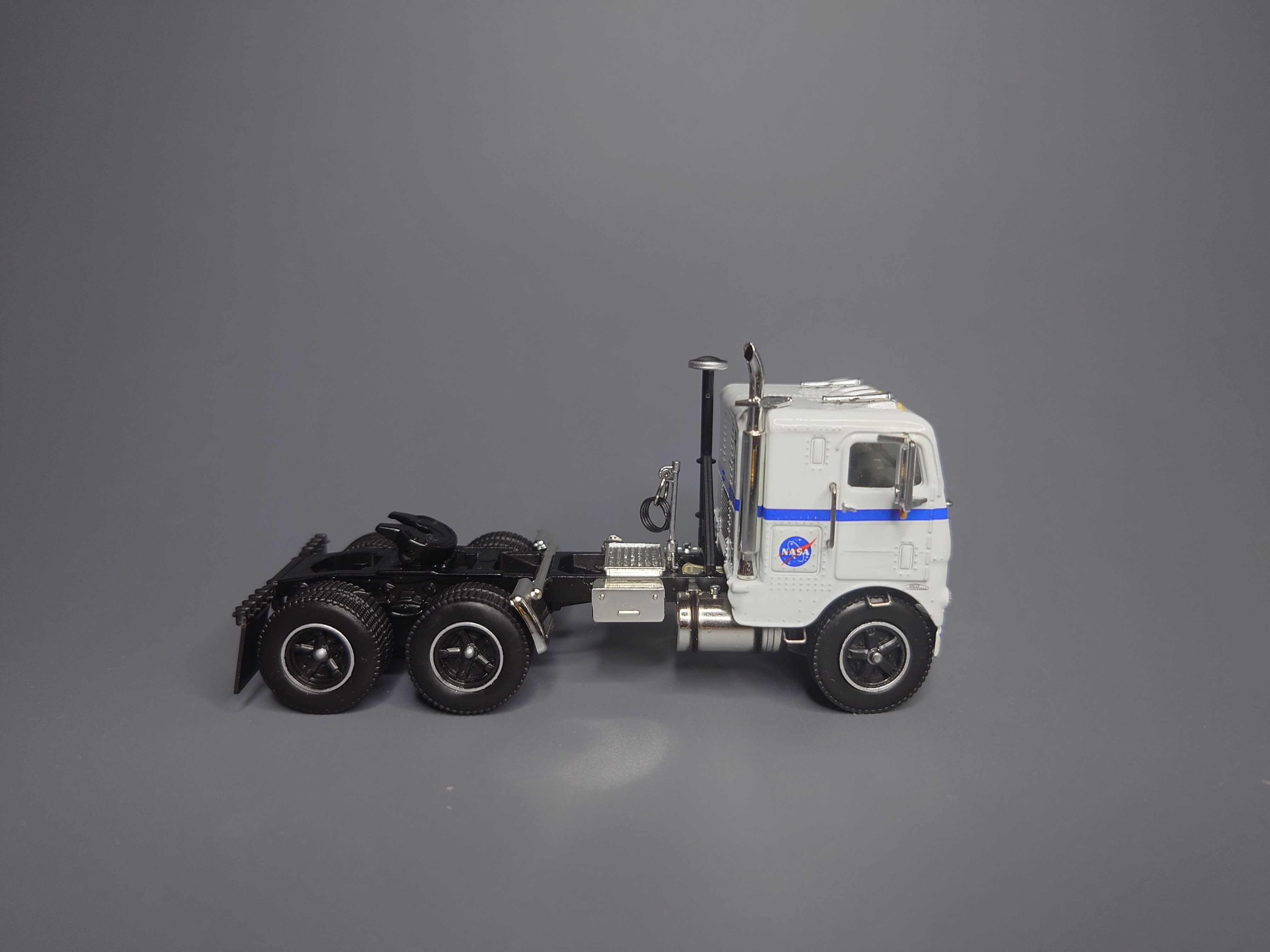 Классический уникальный ретро грузовик НАСА, который встречается очень редко. Шины - резиновые, рама - легкосплавная, а некоторые детали - пластиковые. Есть детали подвески, колеса грузовика и прицепа можно вращать, а переднюю часть автомобиля можно открыть, чтобы увидеть детали двигателя.