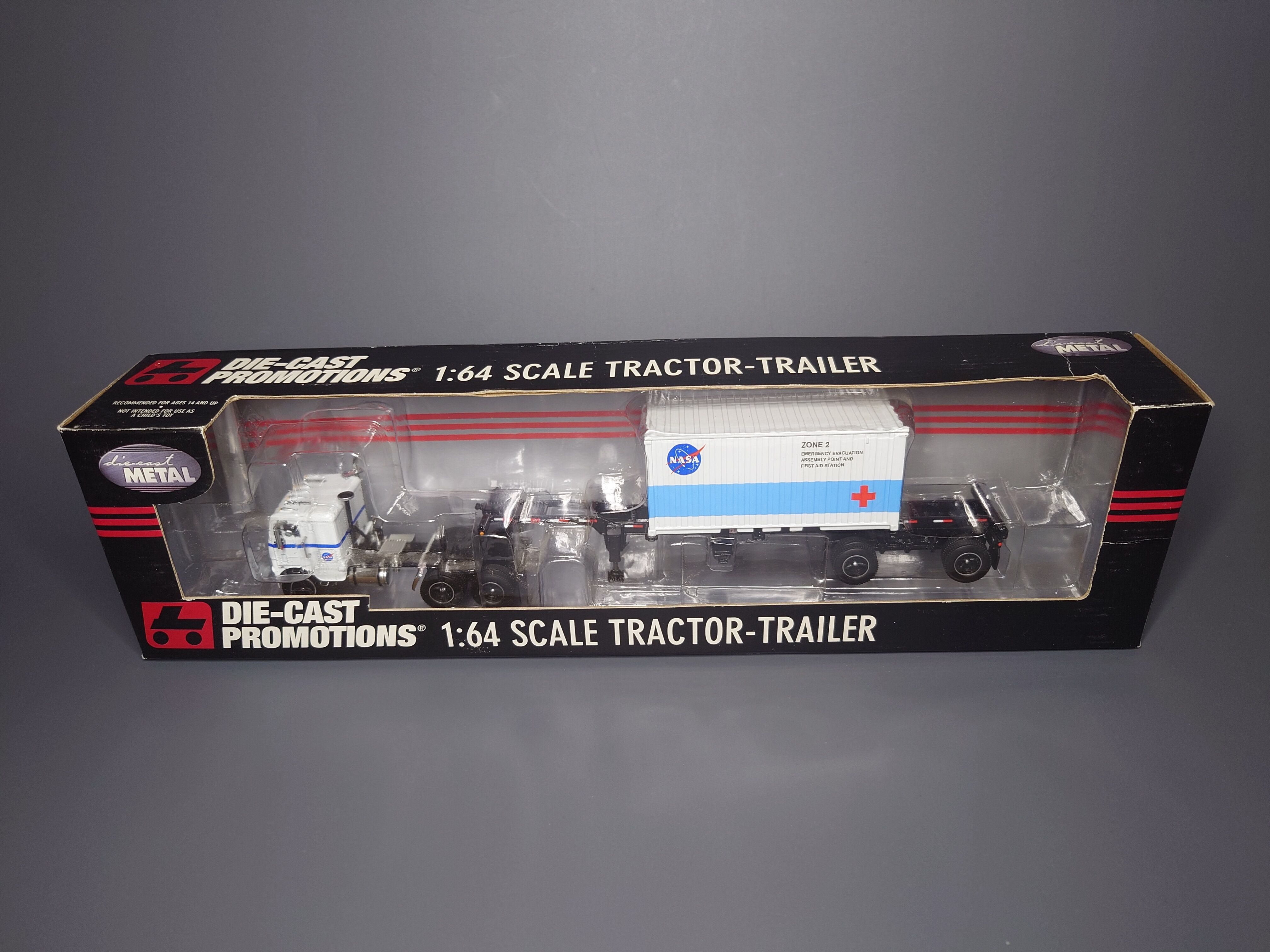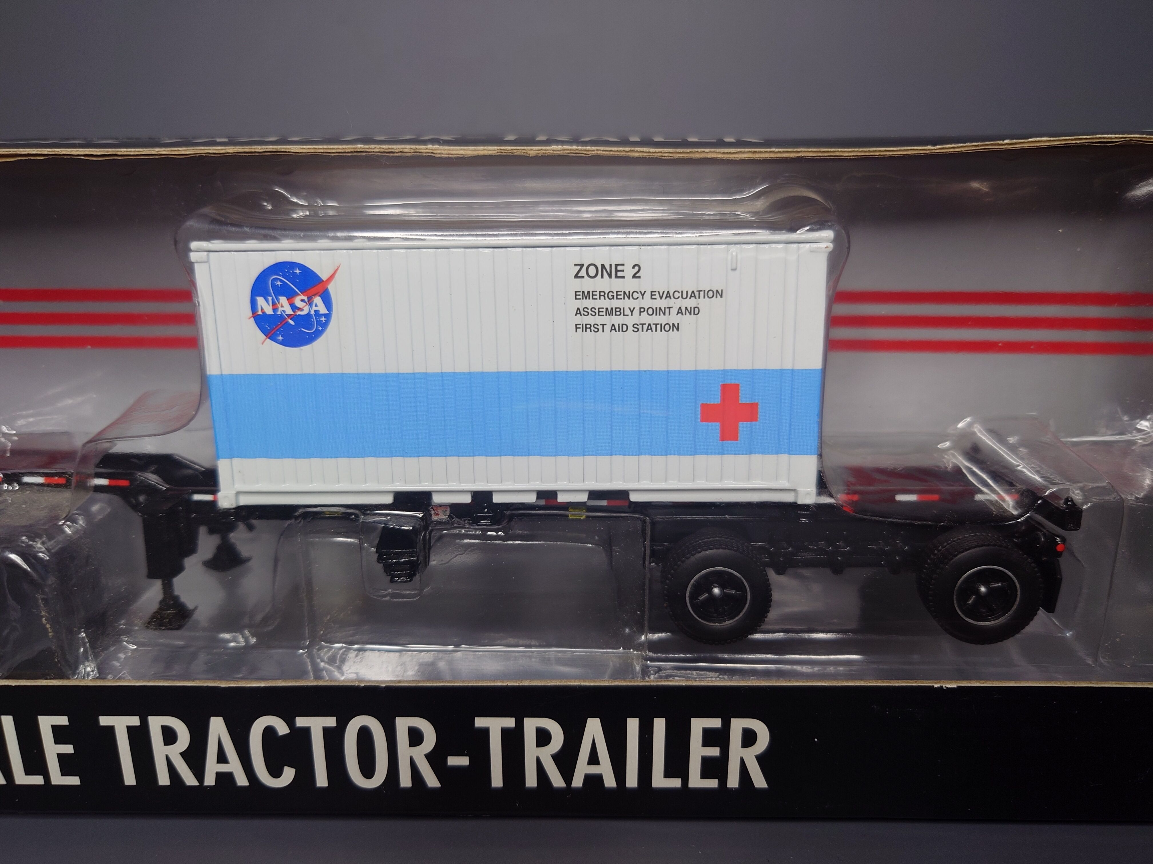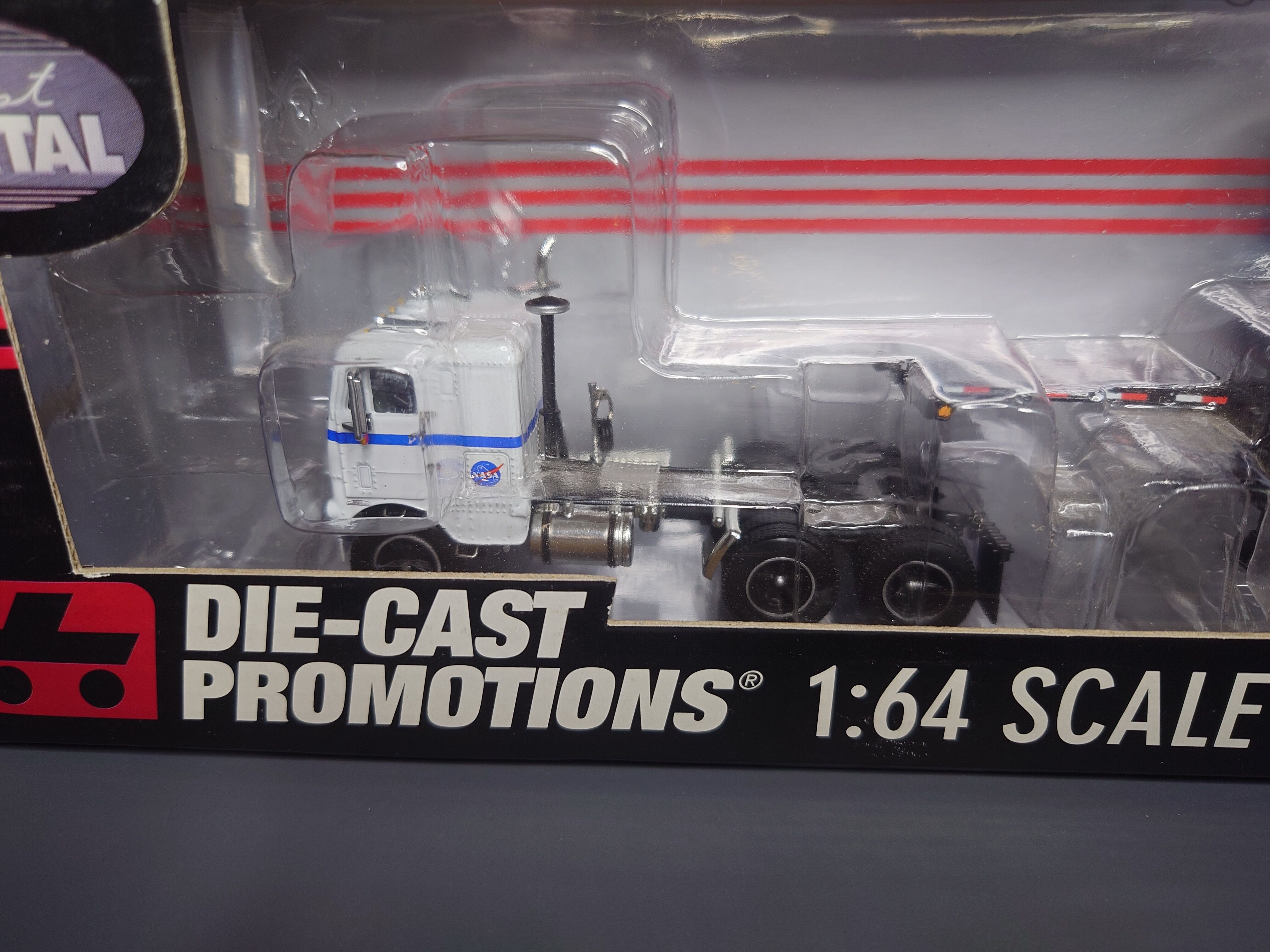 Классический уникальный ретро грузовик НАСА, который встречается очень редко. Шины - резиновые, рама - легкосплавная, а некоторые детали - пластиковые. Есть детали подвески, колеса грузовика и прицепа можно вращать, а переднюю часть автомобиля можно открыть, чтобы увидеть детали двигателя.