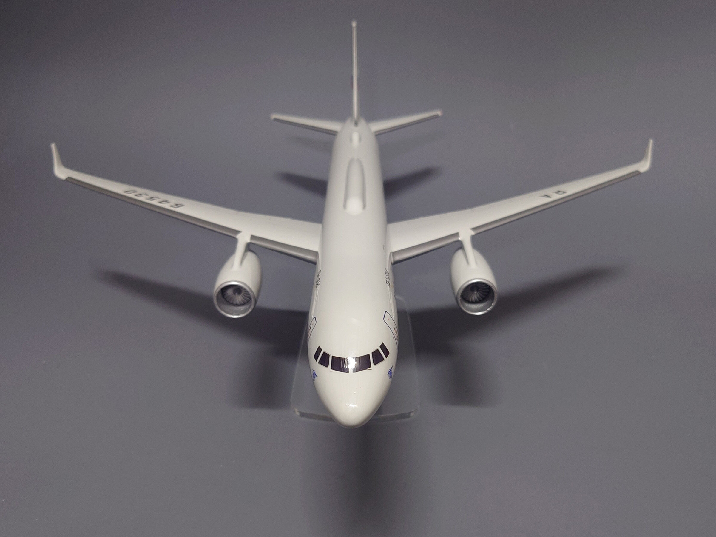 Готовая модель самолета упакована в картонную коробку с поролоновой нишей, что обеспечивает надежную защиту при транспортировке.