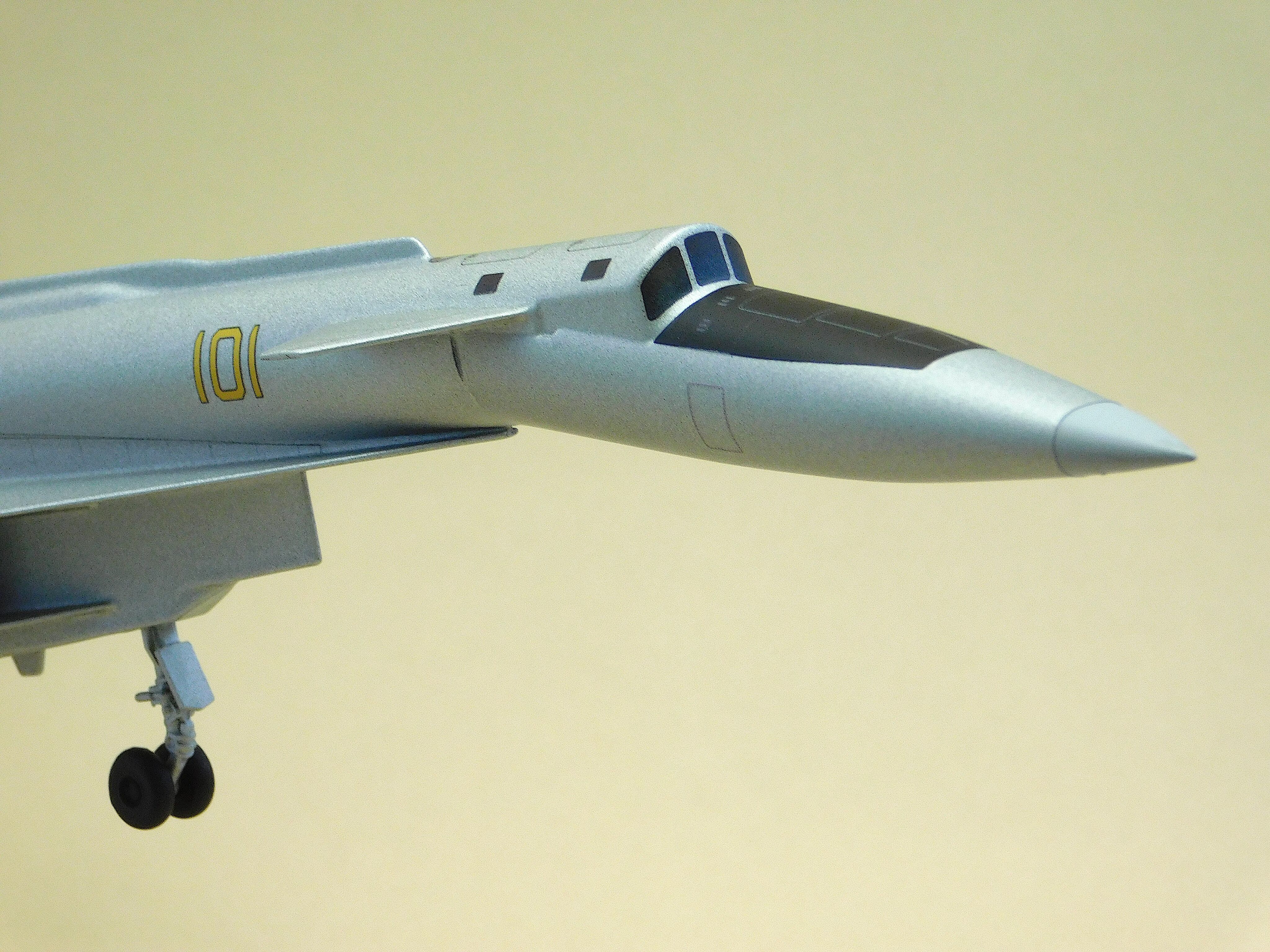 Представляем вам уникальную подарочную настольную модель самолета Т-4 (Сотка), выполненную в масштабе 1:100 с шасси из высококачественных композитных материалов методом литья, что сделает её настоящим украшением вашего рабочего стола или коллекции.