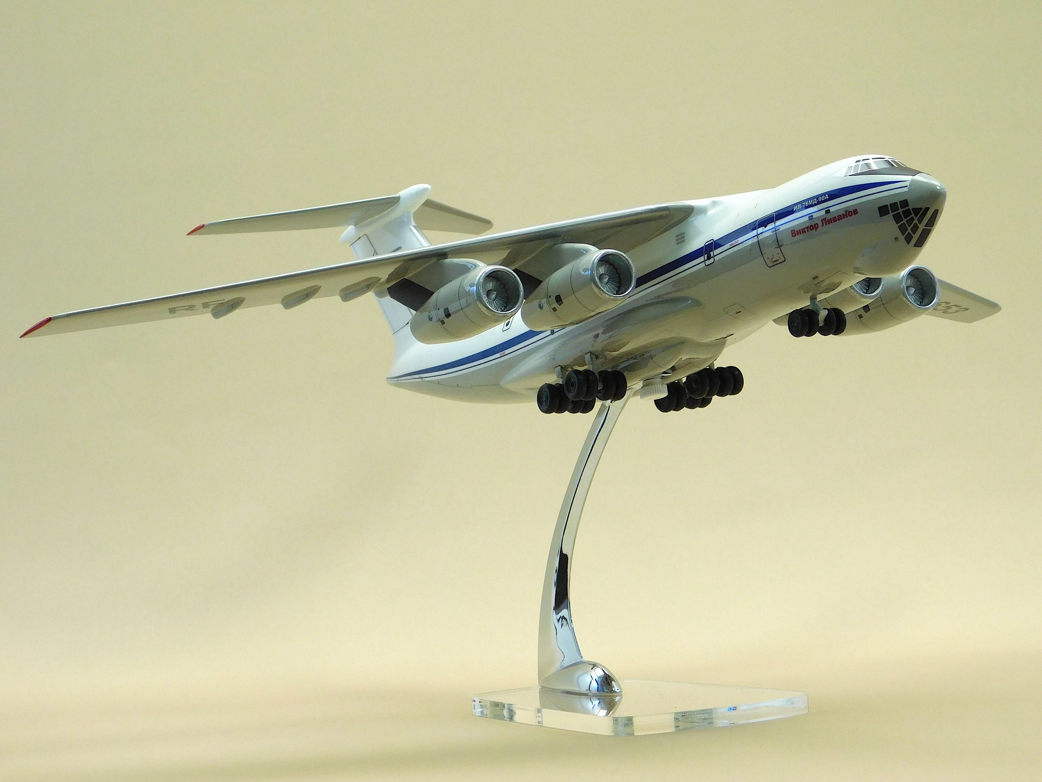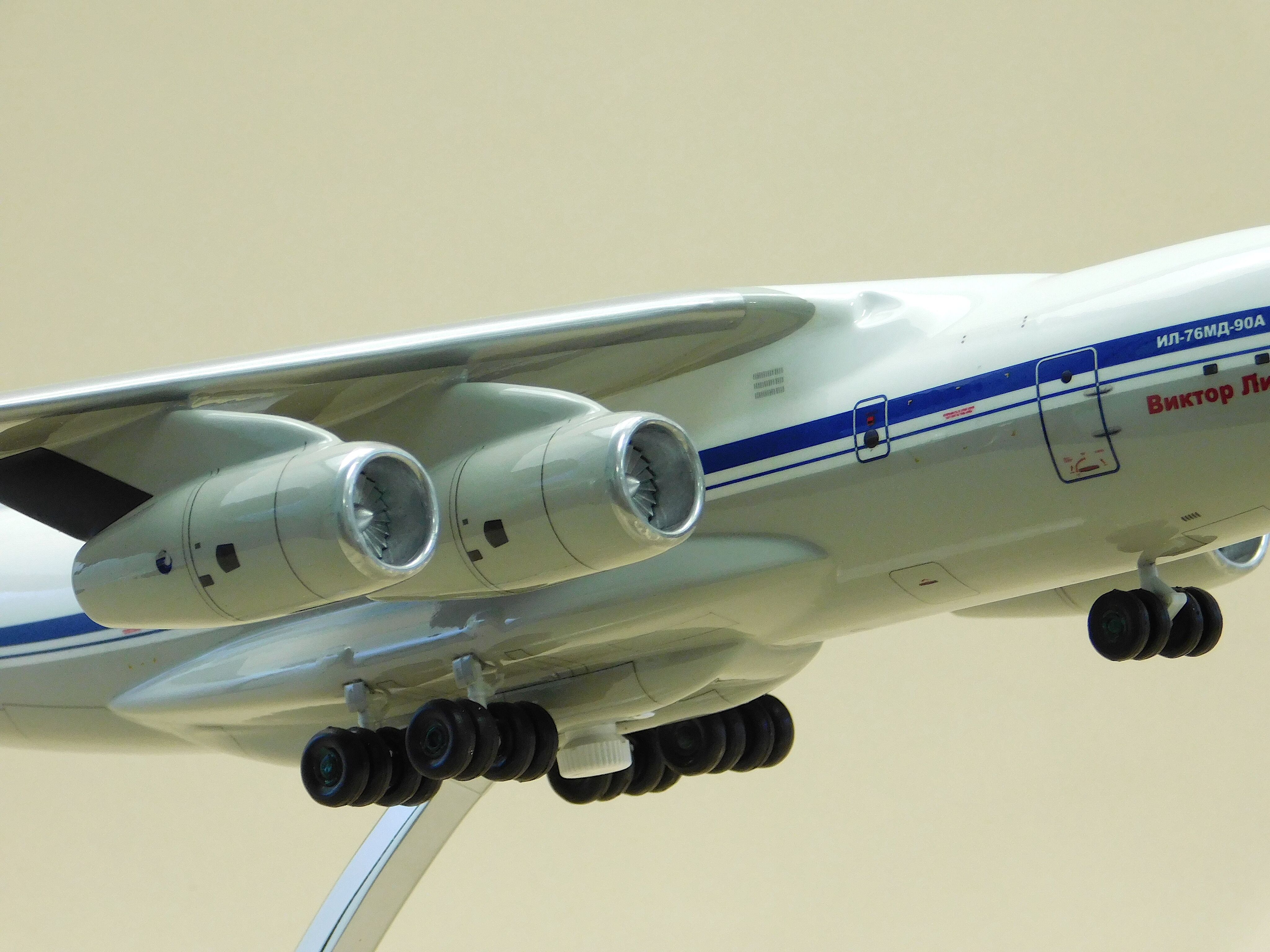 Представляем вам уникальную подарочную настольную модель самолета Ил-76МД-90А Виктор Ливанов с шасси выполненную в масштабе 1:100 из высококачественных композитных материалов методом литья, что сделает её настоящим украшением вашего рабочего стола или коллекции.