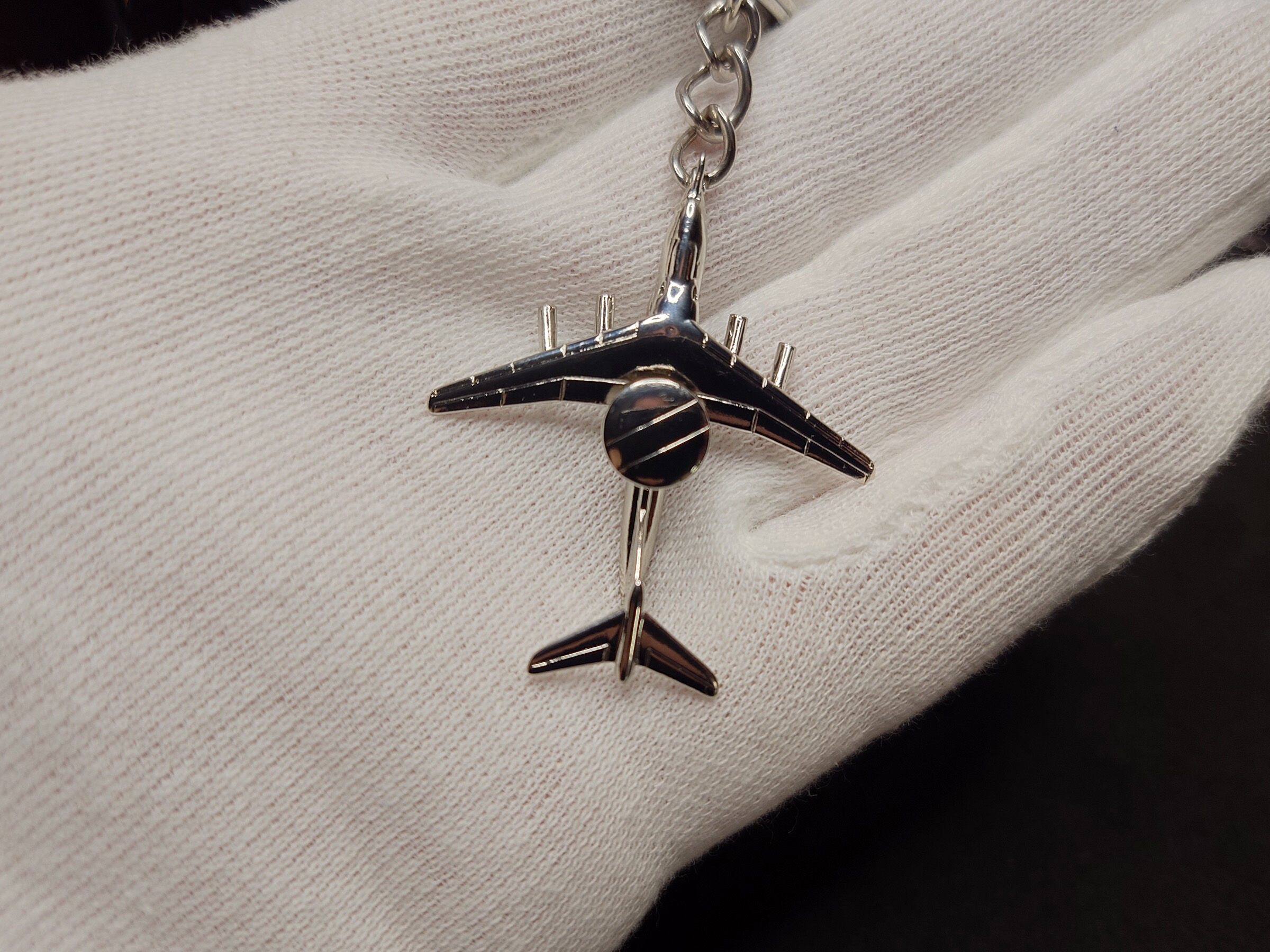 Диаметр кольца - 3.3 см, длина цепочки 2 см, а полная длина с самолетом - 10 см.