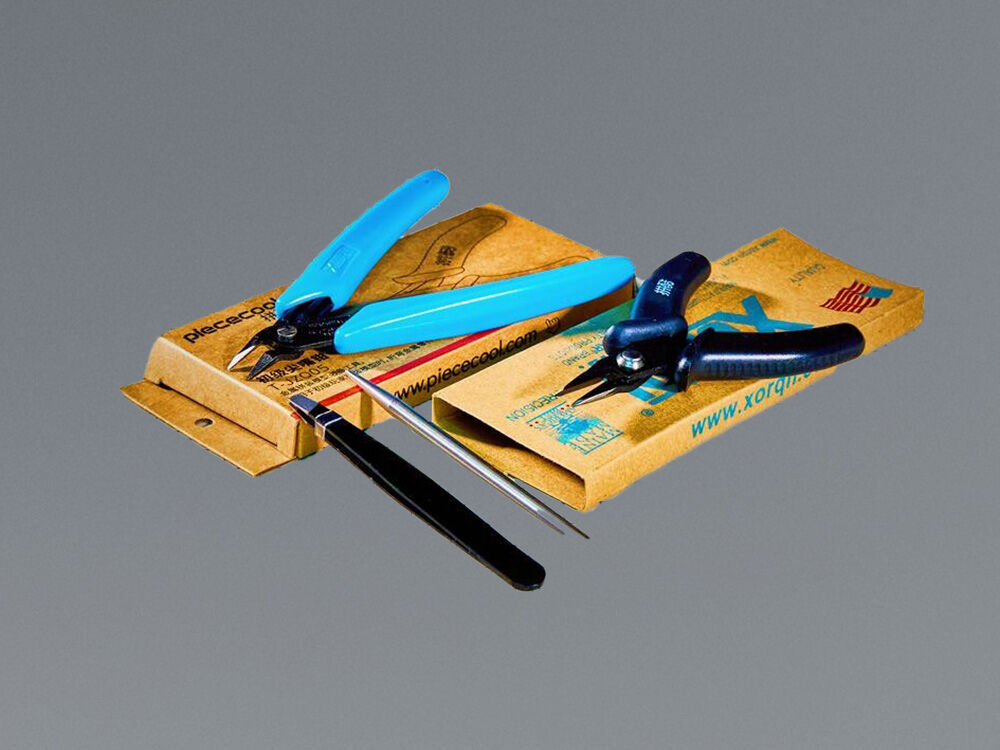 Набор состоит из четырех инструментов - пинцет, гибочный стержень, кусачки и плоскогубцы. Эти предметы помогут вам в работе с мелкими деталями этих наборов, а также облегчат многие домашние дела в будущем.