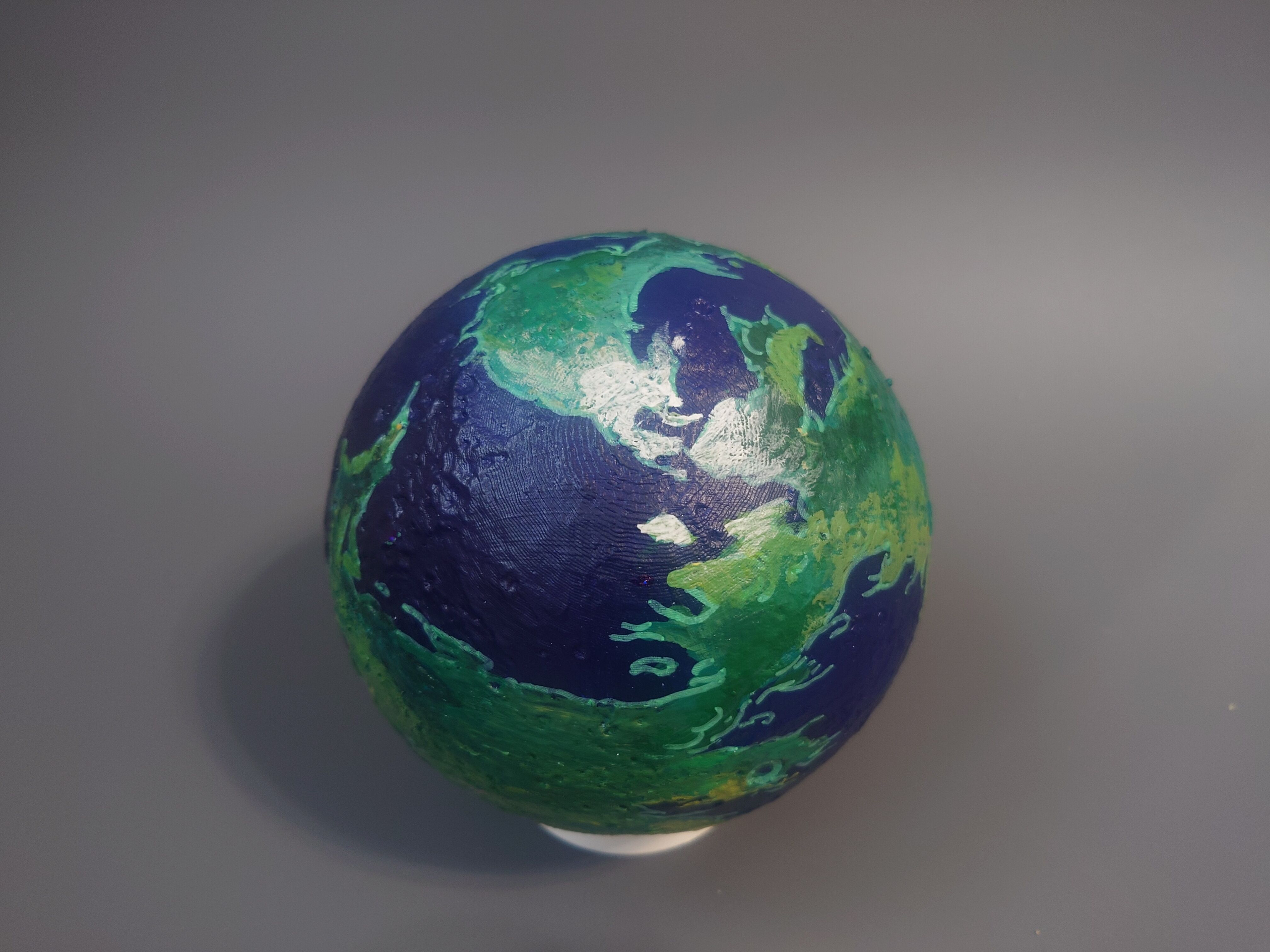 Модель экзопланеты Kepler-438b напечатана на 3D принтере с вымышленным высотным рельефом местности и расположением материков.