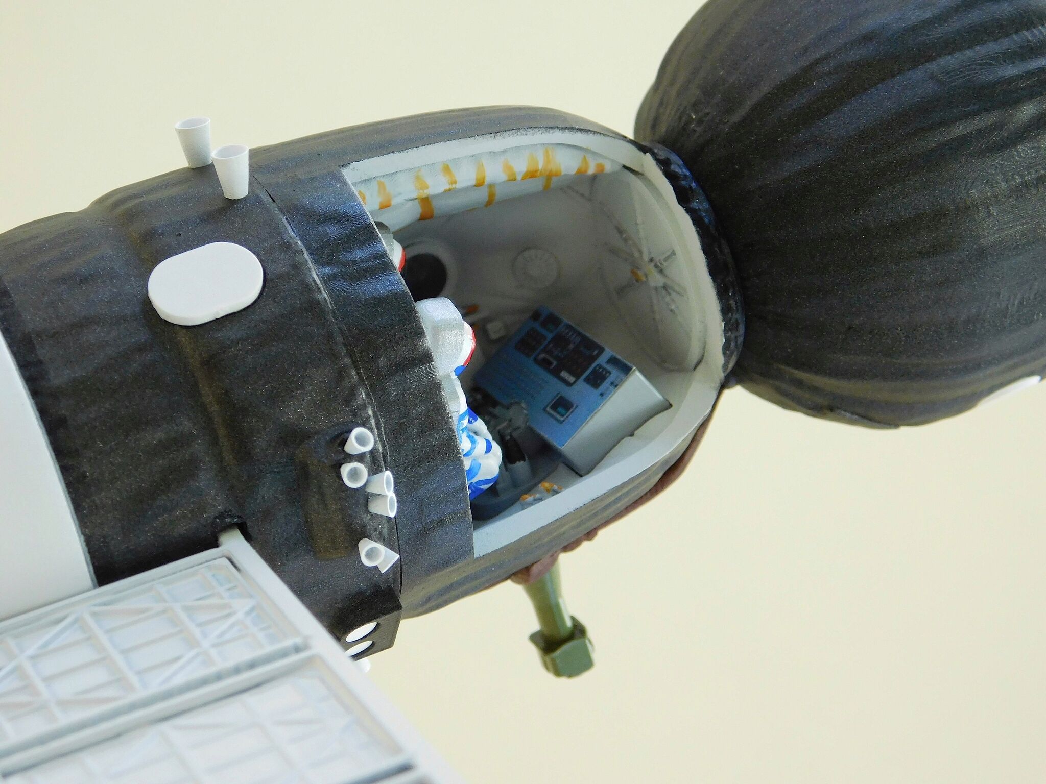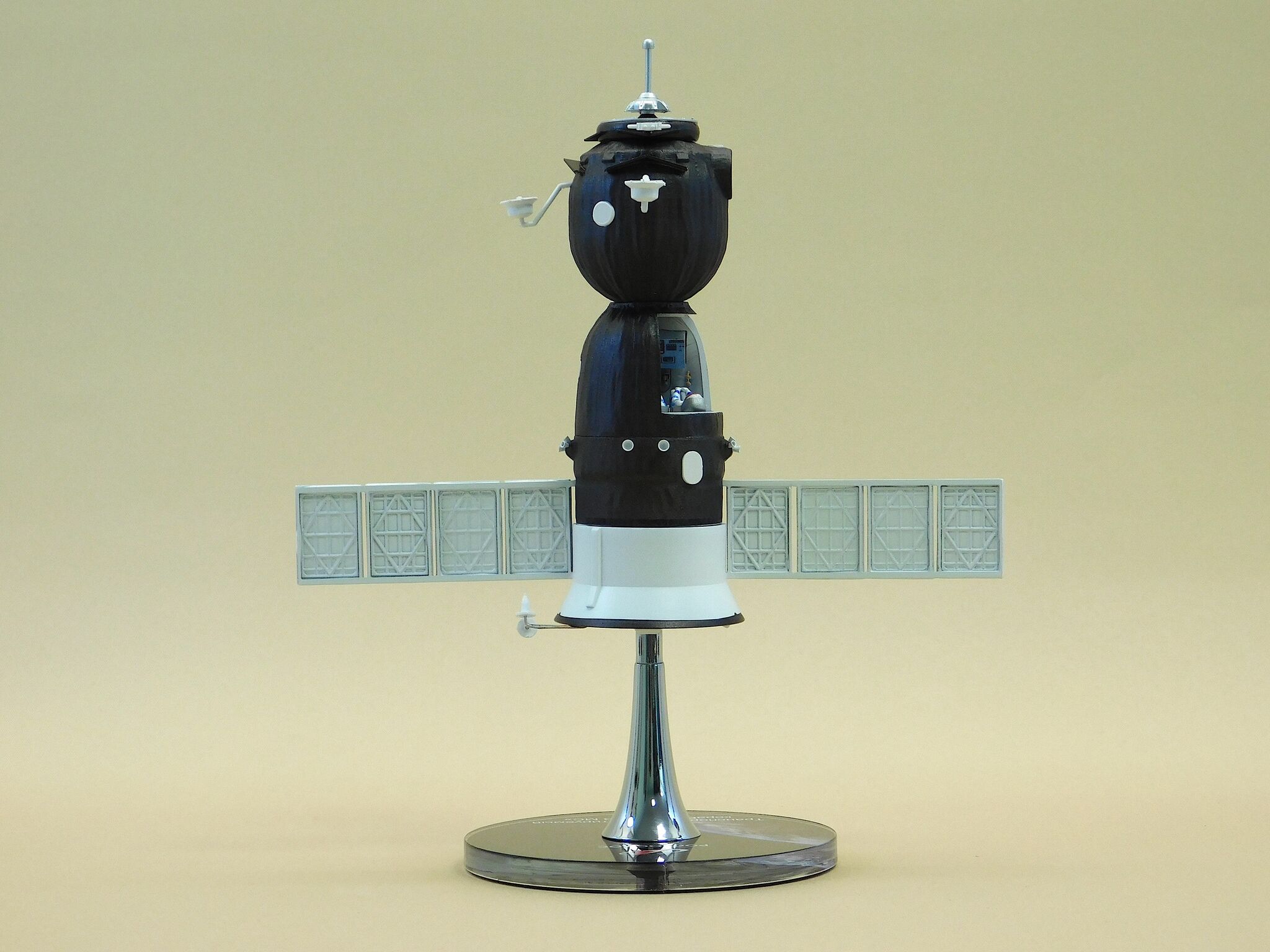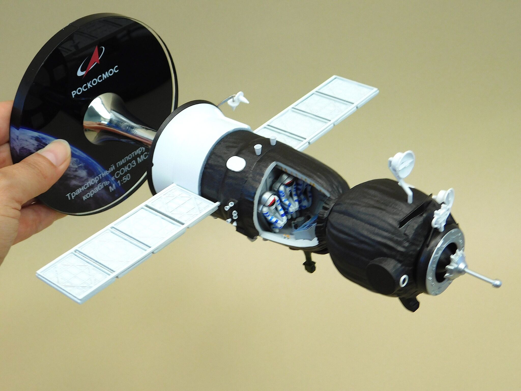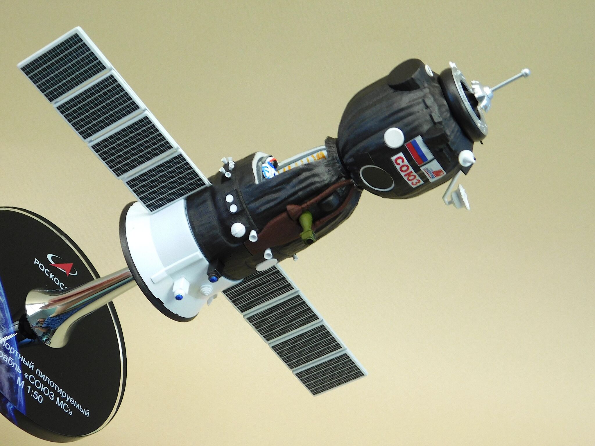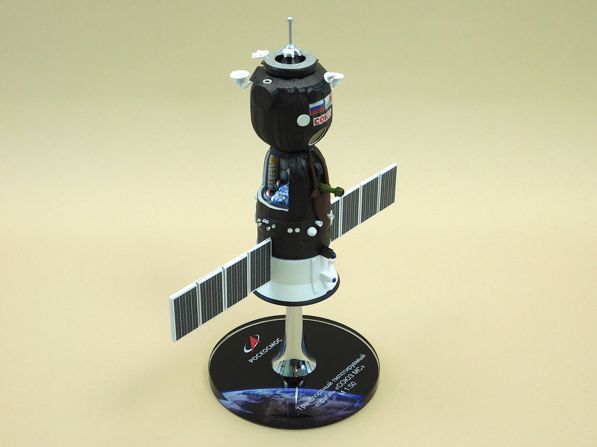 Представляем вам уникальную подарочную настольную модель космического корабля «Союз» с открытой кабиной, выполненную в масштабе 1:50 из высококачественных композитных материалов, что сделает её настоящим украшением вашего рабочего стола или коллекции, а также станет отличным подарком для любителей космоса и истории космонавтики.