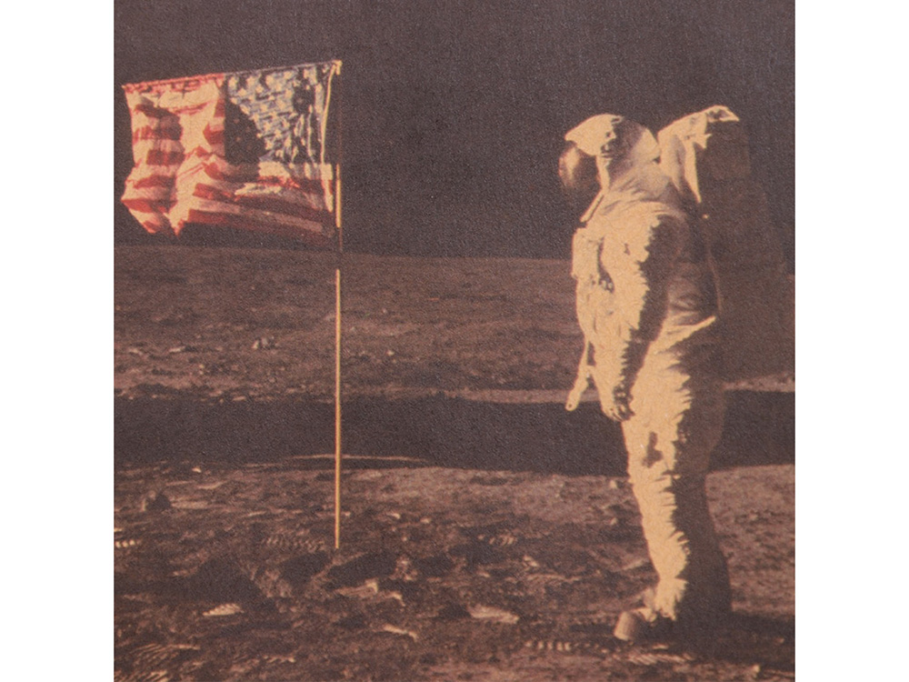 Плакат представляет собой передовицу The New York Times, посвященную высадке американцев на луну.