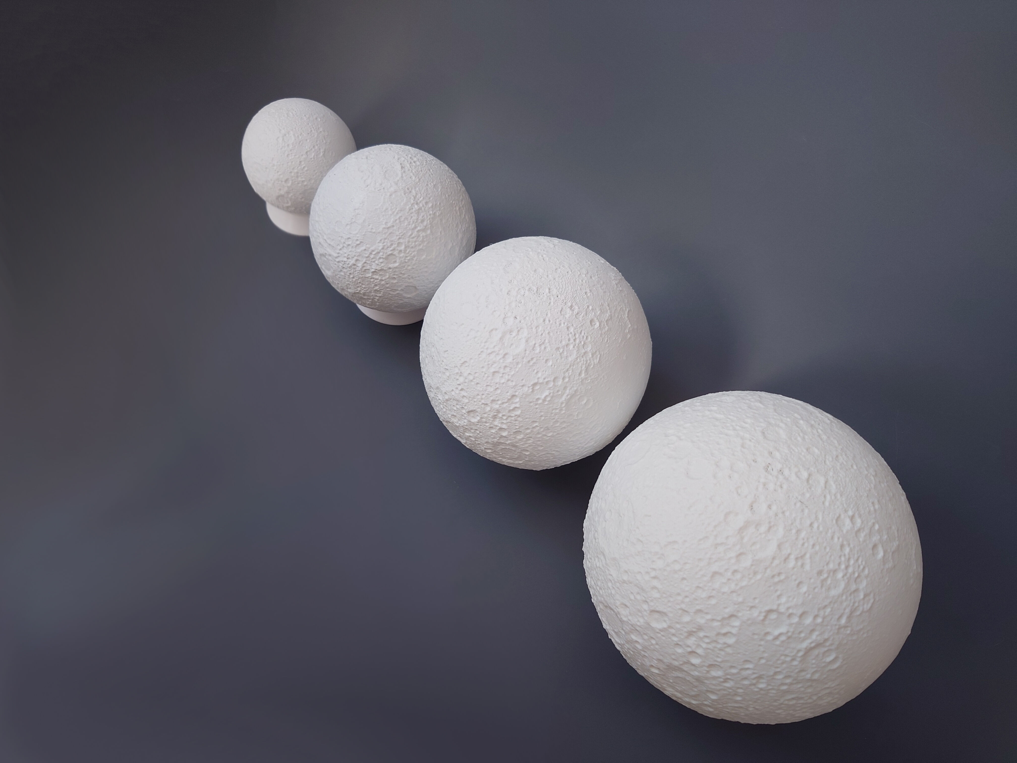 Благодаря печати на 3D принтере, шар показывает геометрию и неровности Луны, ее кратеры и моря.