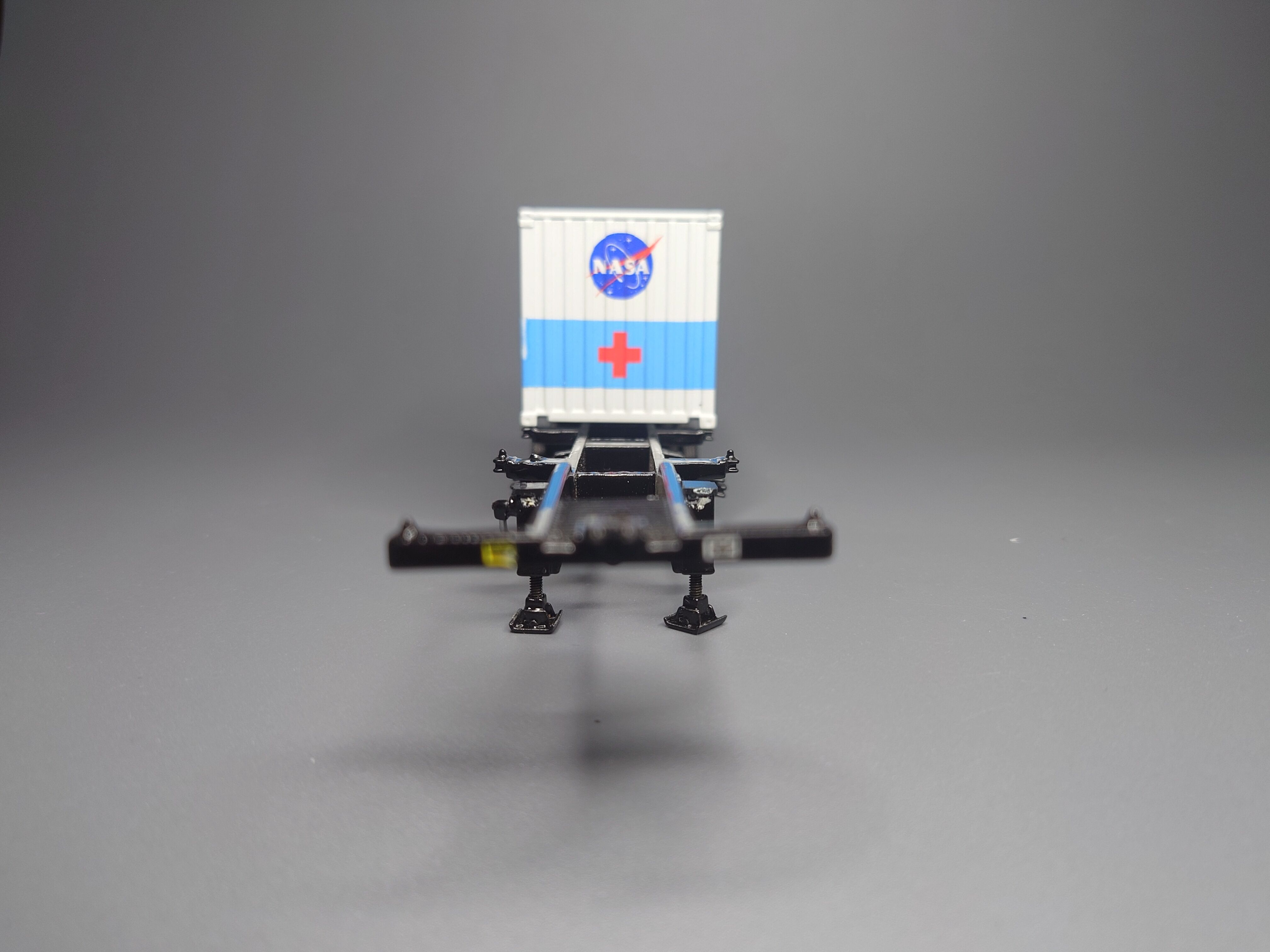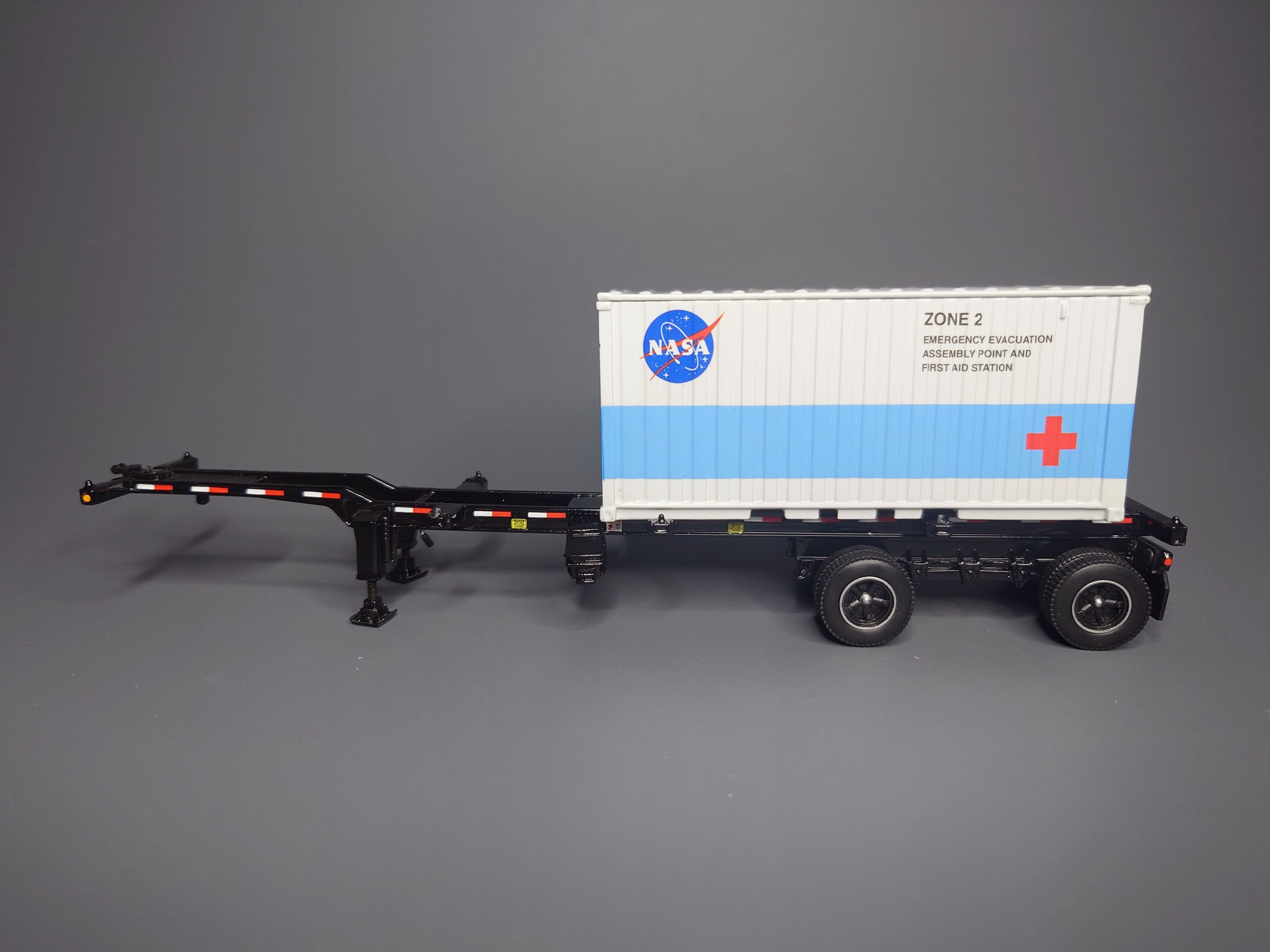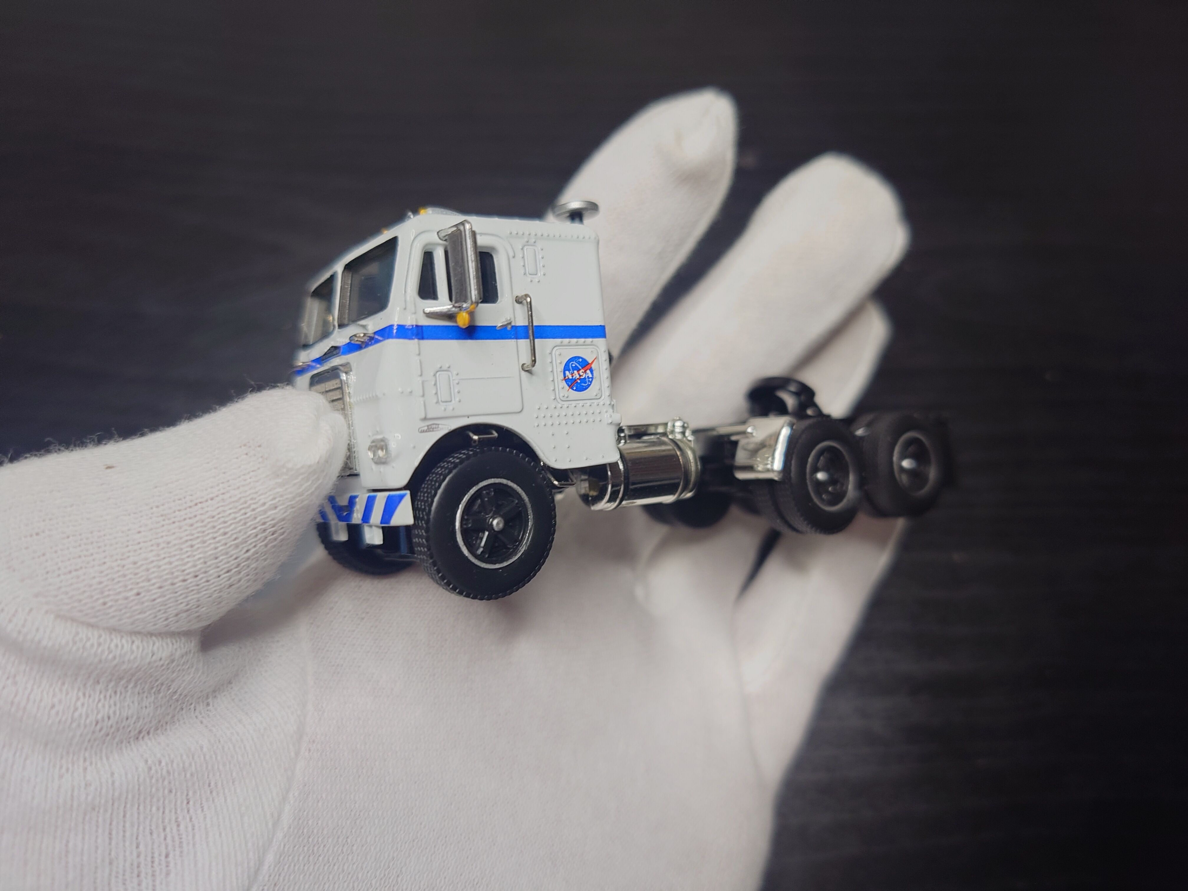 Классический уникальный ретро грузовик НАСА, который встречается очень редко. Шины - резиновые, рама - легкосплавная, а некоторые детали - пластиковые. Есть детали подвески, колеса грузовика и прицепа можно вращать, а переднюю часть автомобиля можно открыть, чтобы увидеть детали двигателя.
